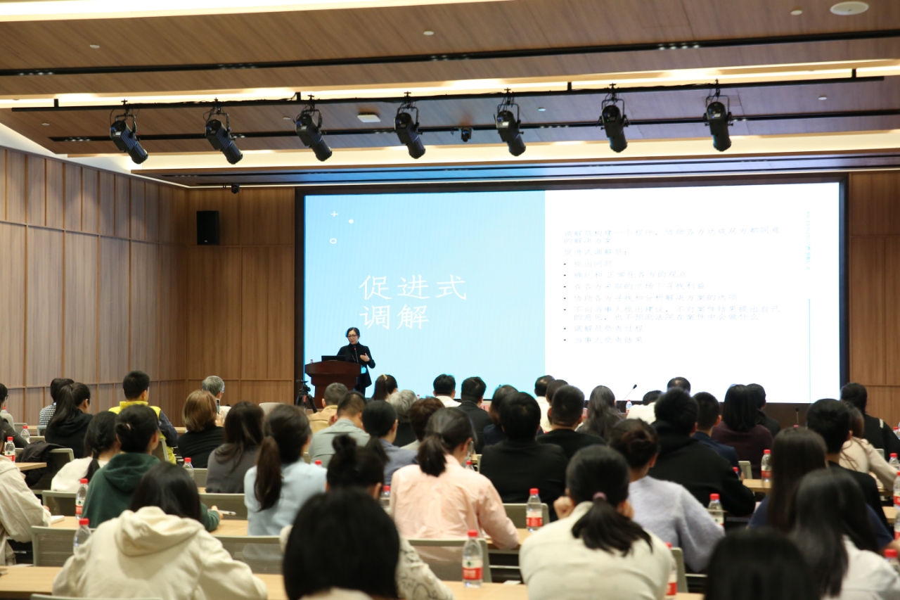 活動邀請了香港調解會副主席、香港地區執業律師馬嫊傃主持模擬調解,並結合模擬調解介紹了香港調解制度的發展歷程、不同調解模式的異同,講解了香港常用的促進式調解模式的流程。「促進式調解給予了當事人較大的自主空間,因此特別適合運用在商事糾紛調解中。」馬嫊傃表示,「通過參與前海法院的調解工作,我們了解了內地的調解機制,智能化的調解平台也讓我們大開眼界。接下來,探索內地評估式調解和香港促進式調解的融合點,力爭形成我們大灣區特有的專業跨境商事調解模式。」