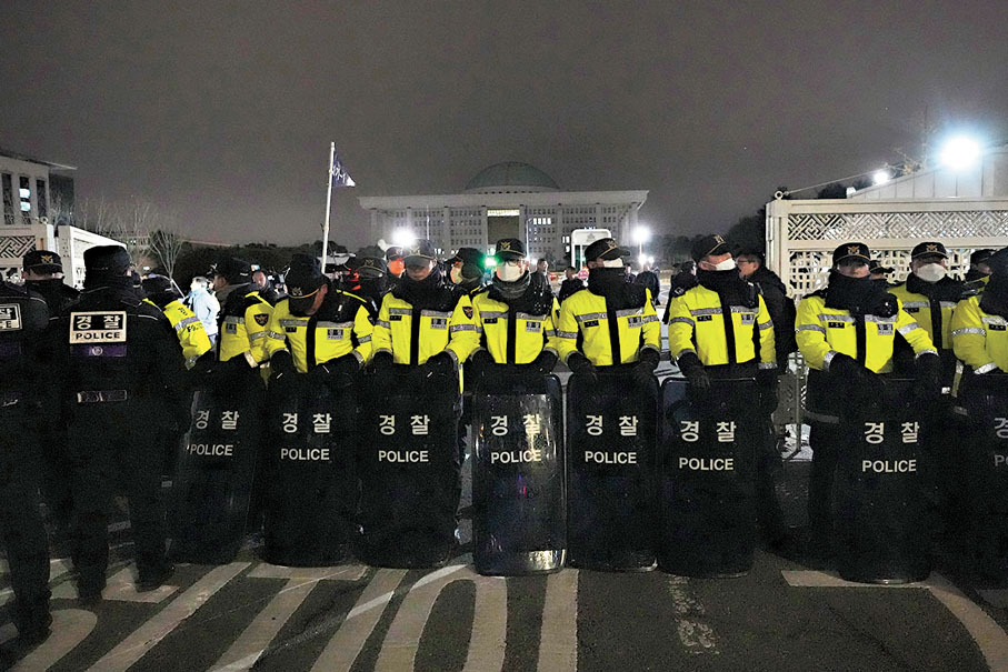 - 韓國軍隊進入國會前衝突現場維持秩序
