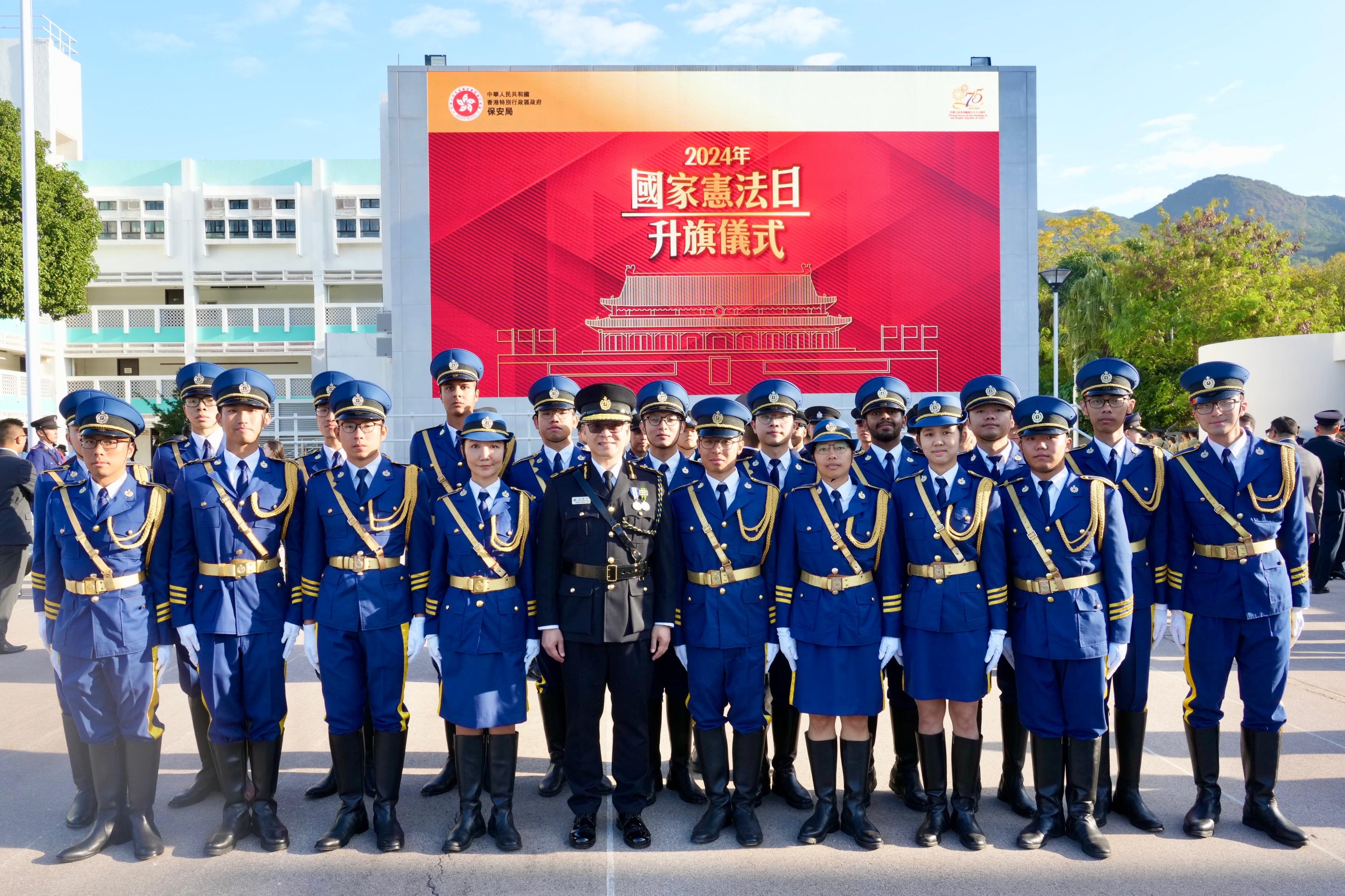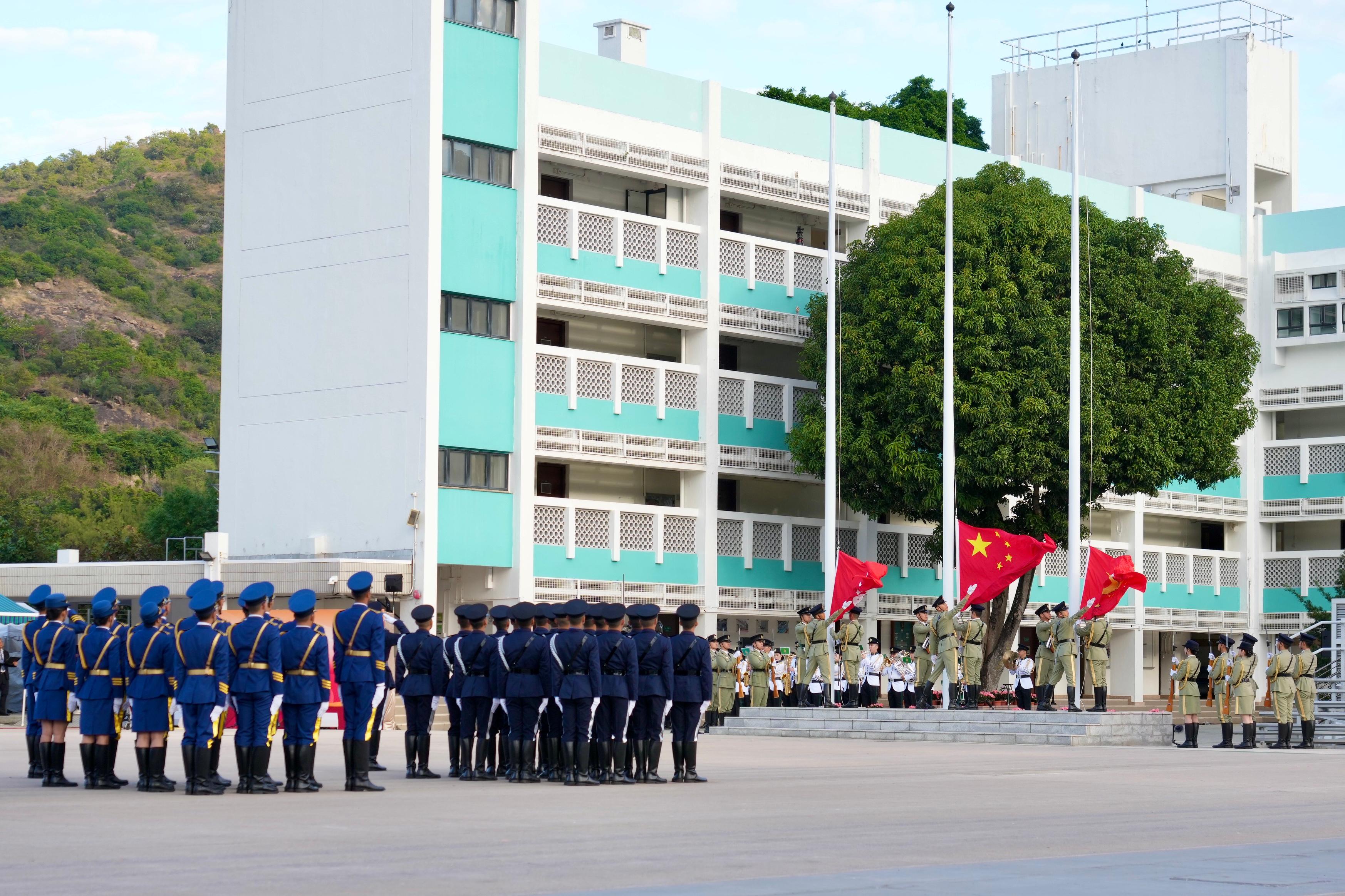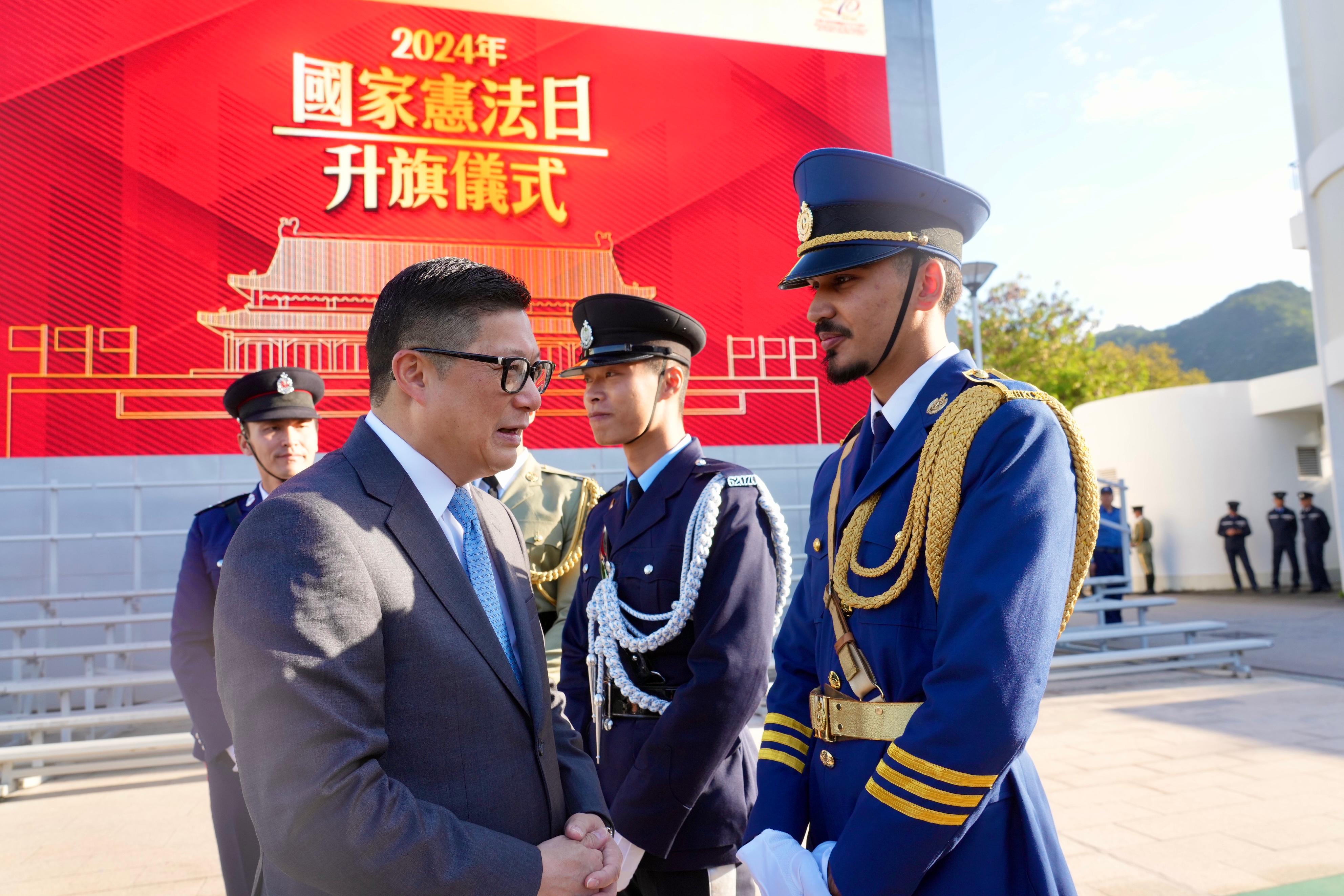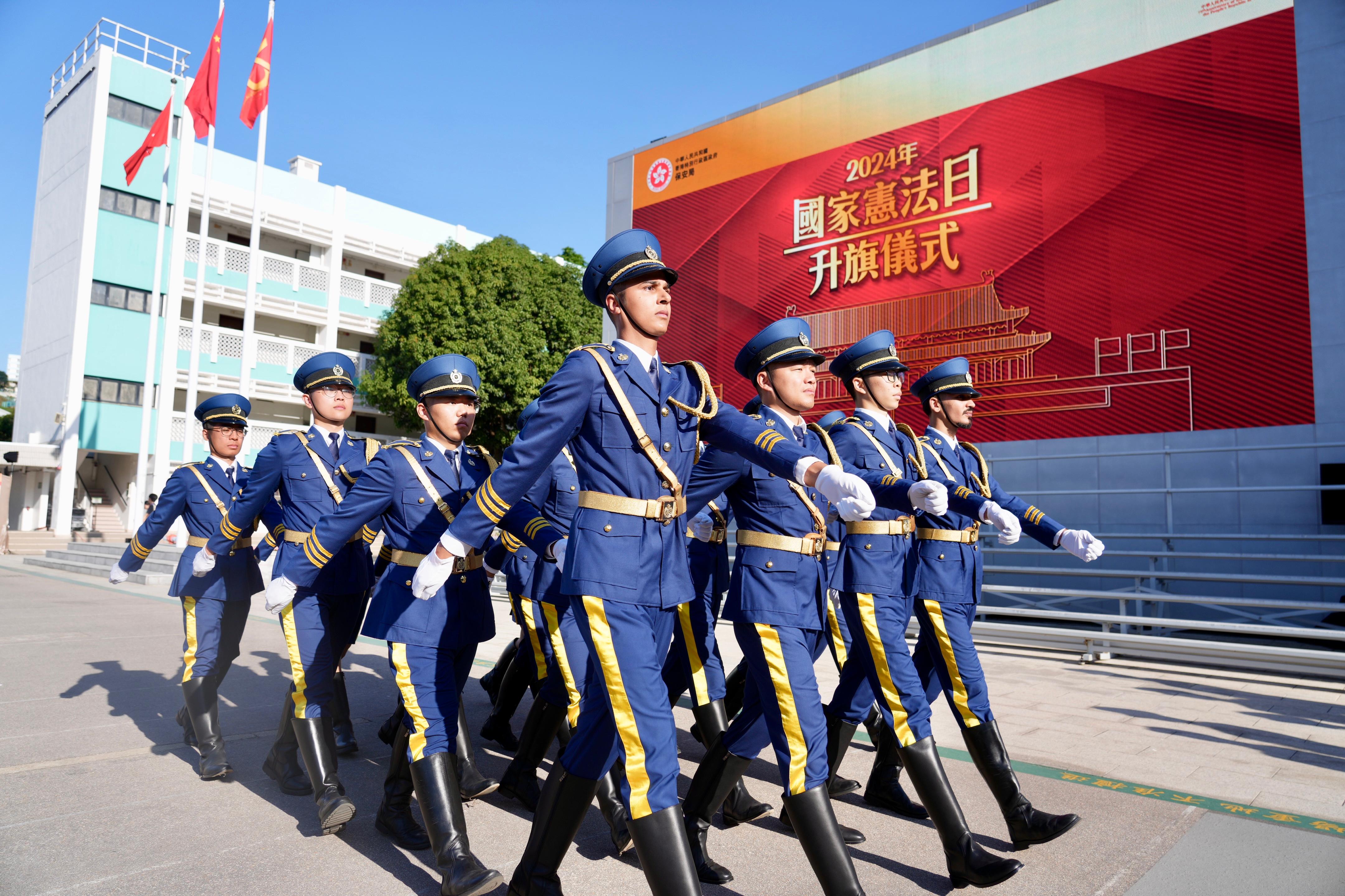 今天是「國家憲法日」,保安局在今早聯同懲教署及一眾紀律部隊在海關學院舉行升旗儀式,同心弘揚國家憲法精神。