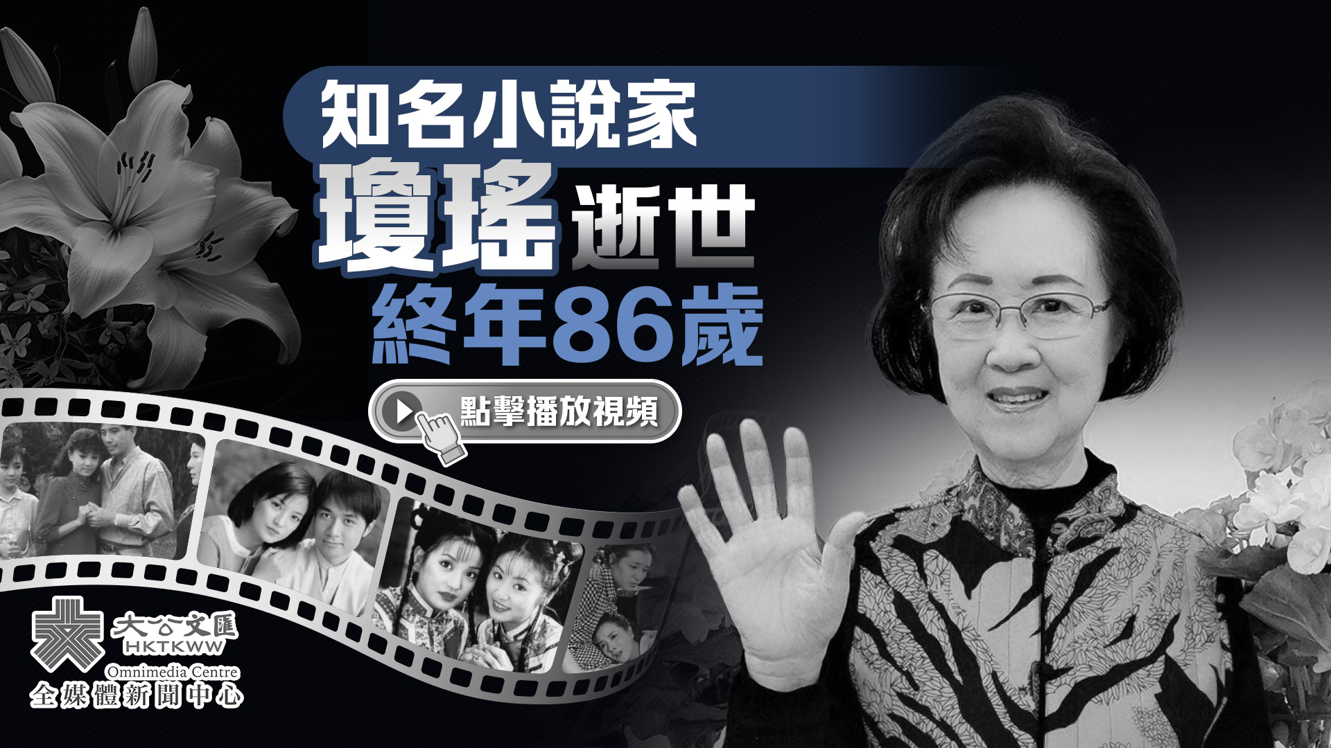 大公文匯網報道,據多家媒體消息,台灣新北市淡水區一處民宅4日下午發生一起死亡事件!一名86歲女性在家中離世,死者身份是知名言情小說作家瓊瑤,而瓊瑤多部小說作品被改編為電影或電視劇,包括《還珠格格》、《一簾幽夢》。
