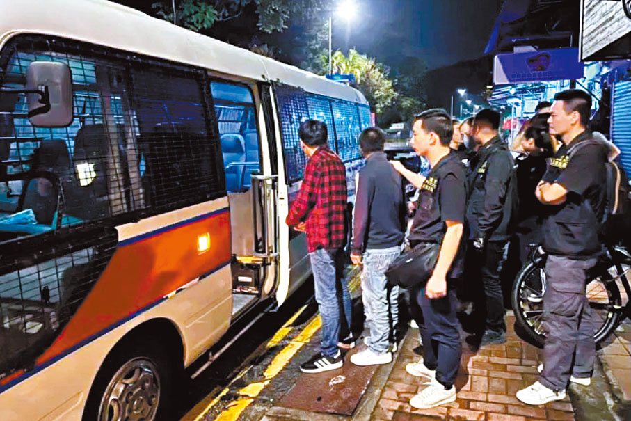 被捕的39男17女(14歲至57歲),涉嫌管有第一部毒藥、銷售第一部毒藥、販運危險藥物、藏毒、管有違禁武器、營辦賭場、在賭場內賭博及藏有工具可作吸食毒品用途等罪。今次行動中,有7名被捕人年齡在21歲以下,其中5人是學生,他們被途人、老師、朋友或巡警發現精神異常,從而被揭發其吸食「太空油」習慣。警方調查發現,有不法分子先將依托咪酯粉末混入精油或其他毒品,製成液態依托咪酯,再將液體用針筒注入電子煙彈,然後將製成品放在網上、社交平台及非法場所放售。