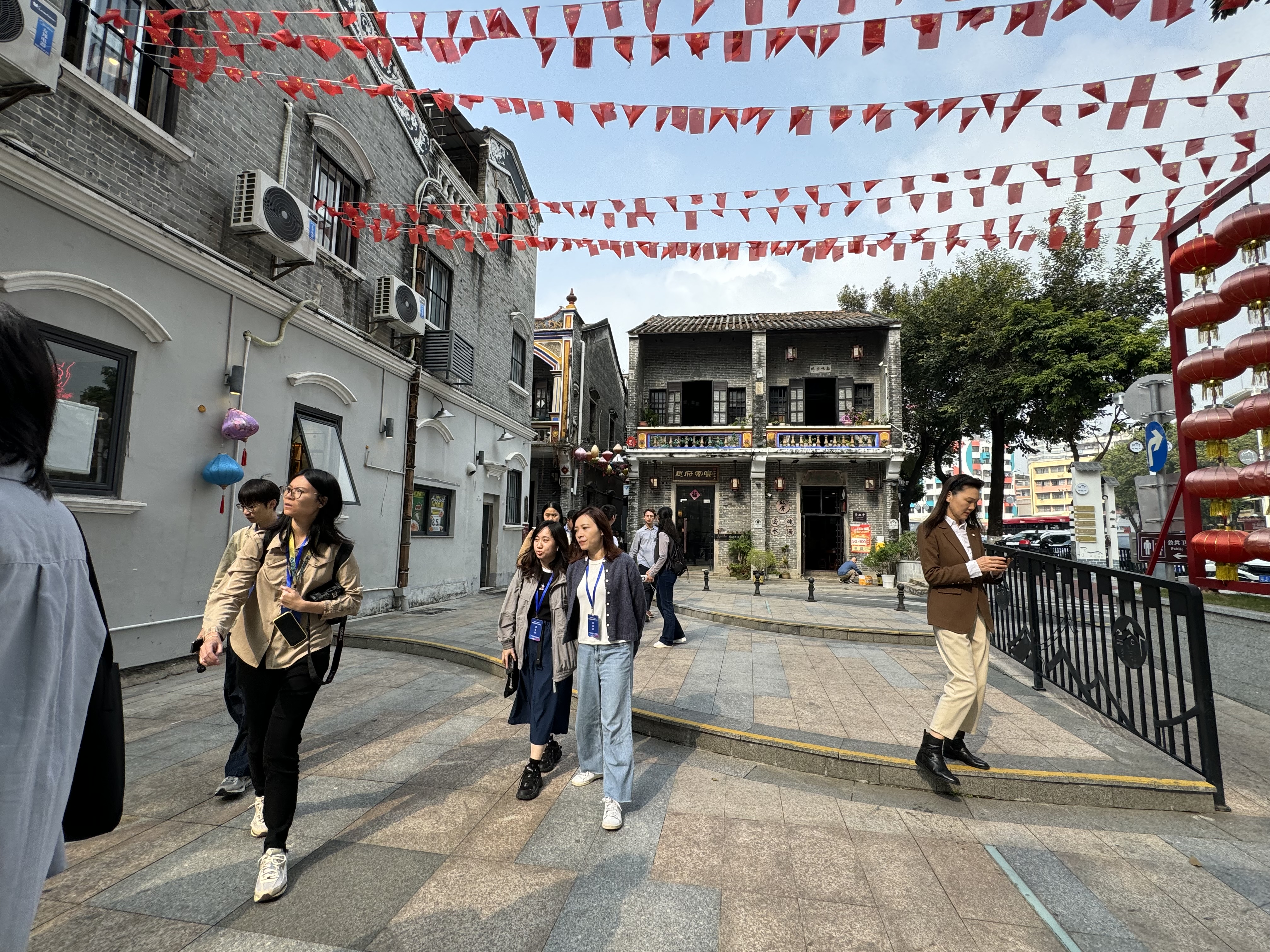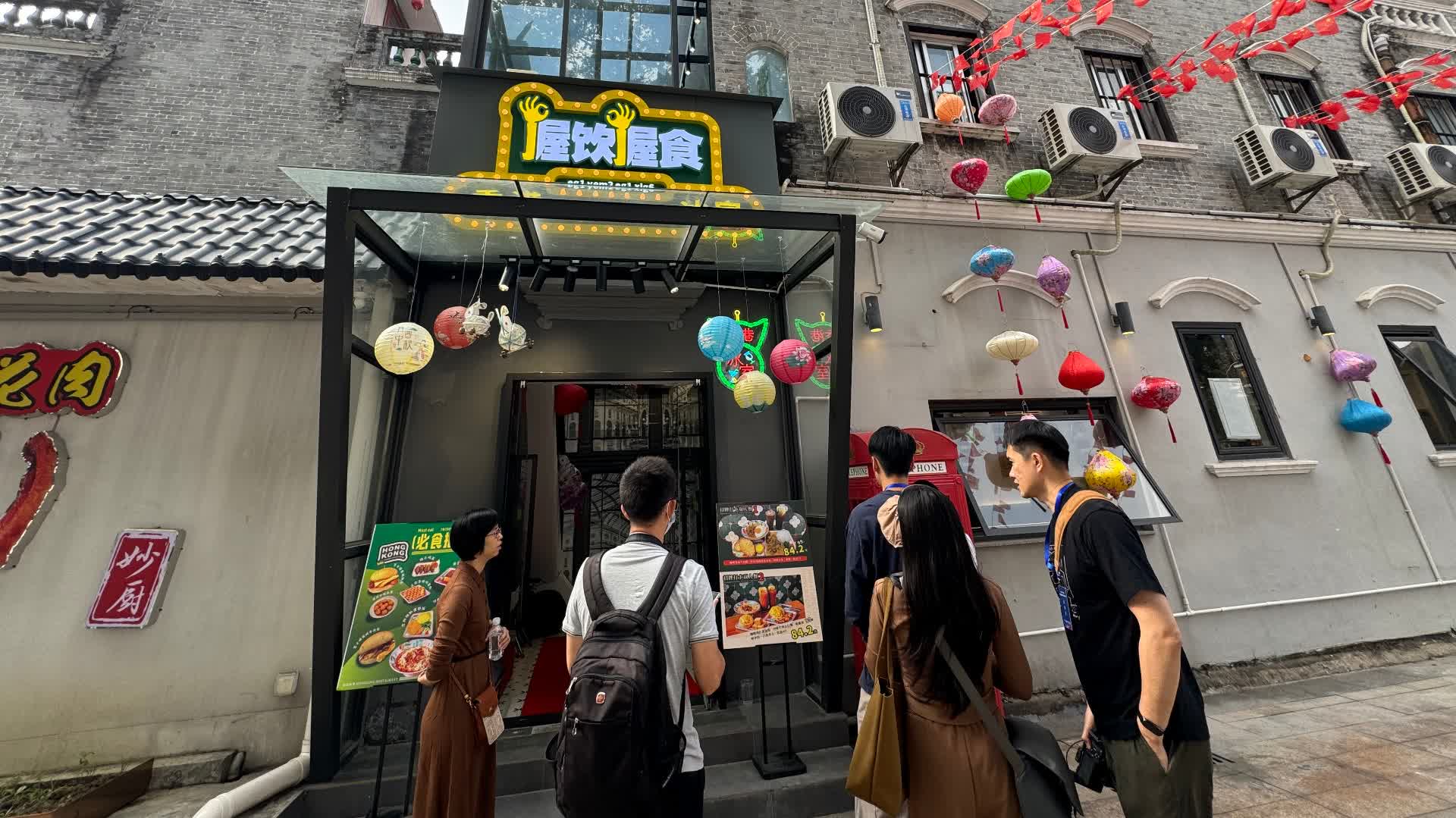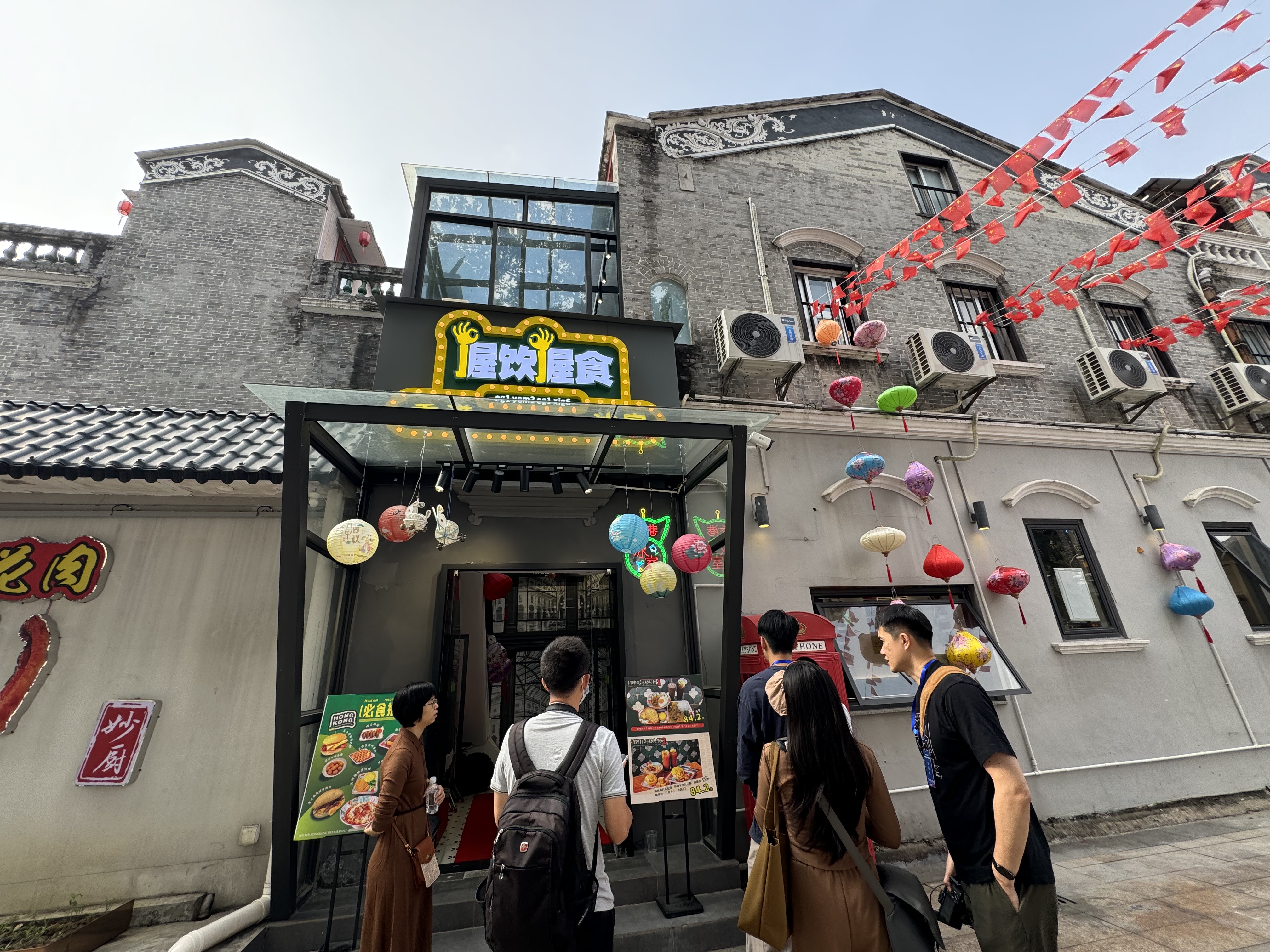 (大公文匯網 記者 盧靜怡、凱雷 廣州報道)5日上午,「同心築夢·共謀發展」粵港澳媒體灣區行採訪團一行來到江門,分別走訪了中國僑都華僑華人博物館、長堤歷史文化街區,感受江門濃郁的華僑華人文化氣息。漫步在長堤歷史文化街區,在一座青磚老建築前,港風的霓虹燈牌「香港冰室」吸引了採訪團的目光,其招牌「握飲握食」的粵語諧音梗,更透露出一絲港式幽默。這家香港茶餐廳的老闆之一、江門市港飲港食技術有限公司董事總經理葉漢忠告訴記者,自己本身在香港開了火鍋店和茶餐廳,今年到江門創業開茶餐廳,發現創業成本僅有香港的1/10,投資回報利潤比香港高。他大讚江門的文旅消費旺:「我們這個月中準備開分店,短短四個月時間開兩家店,這速度也出乎我意料。」