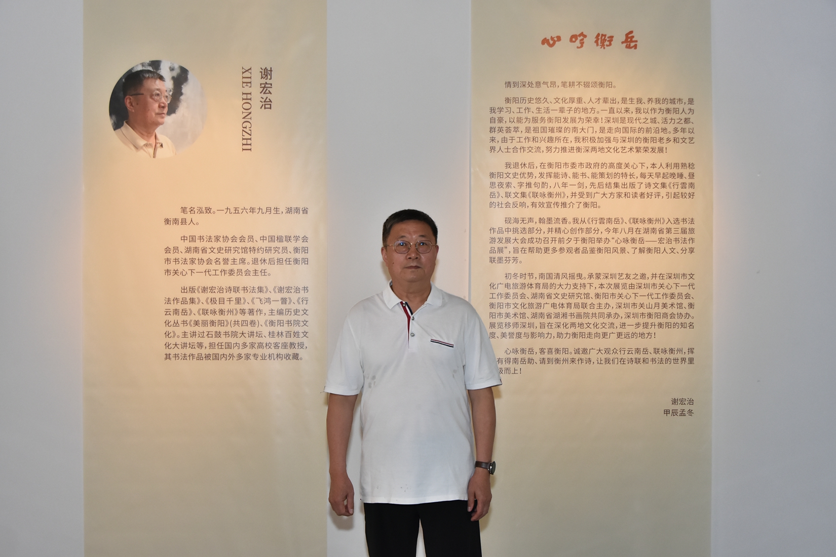(大公文匯網 記者 李望賢 深圳報道)衡陽,又稱雁城,歷史悠久,無數文人墨客在此留下詩篇。日前,「心吟衡岳——謝宏治詩詞楹聯書法展」在關山月美術館開幕。以詩詞為內容,以楹聯為載體,共呈現謝宏治創作的66件作品,展現出衡陽璀璨人文的藝術迴響。