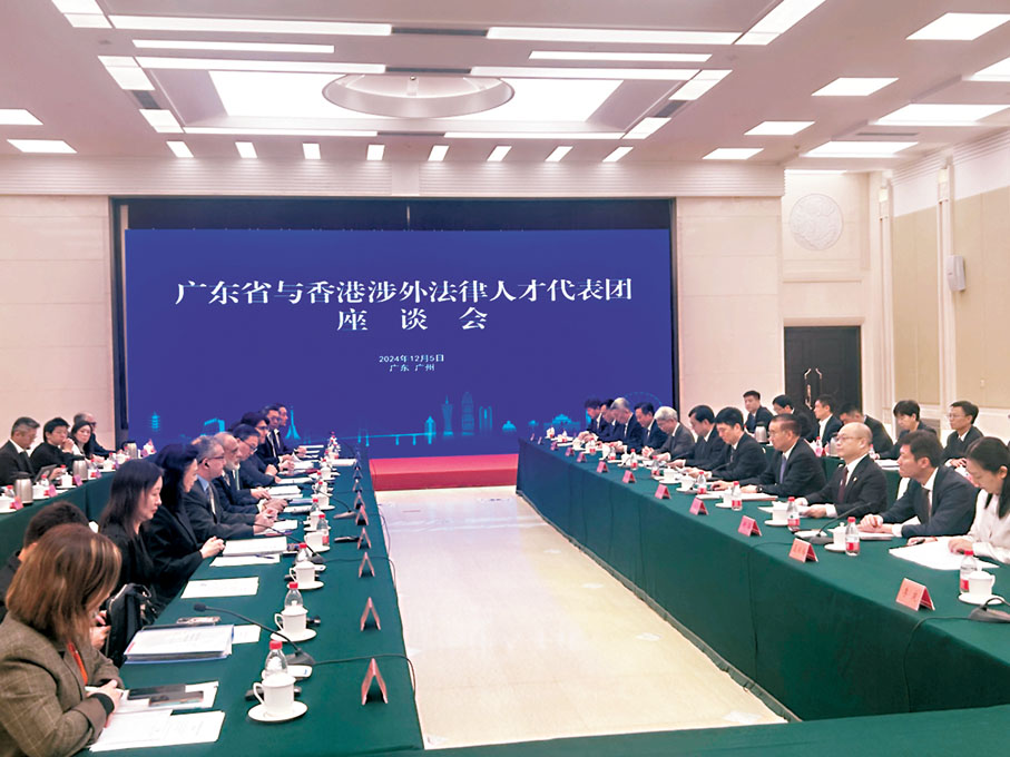 (香港文匯報記者 敖敏輝 廣州報道)香港特區政府律政司司長林定國昨日率香港涉外法律人才代表團一行30多人抵達廣州,開啟粵港澳大灣區內地城市訪問行程。當天,廣東省與香港涉外法律人才代表團座談會在穗舉行,廣東省副省長劉國周會見林定國和中央政府駐港聯絡辦副主任劉光源,來自中央港澳辦、國務院港澳辦、中央政府駐港聯絡辦、司法部、廣東省政府等的相關部門負責人參加會議。代表團此行除了解廣東發展狀況的最新進展,還將與內地部委、法律界、企業界交換意見,探討合作機遇。