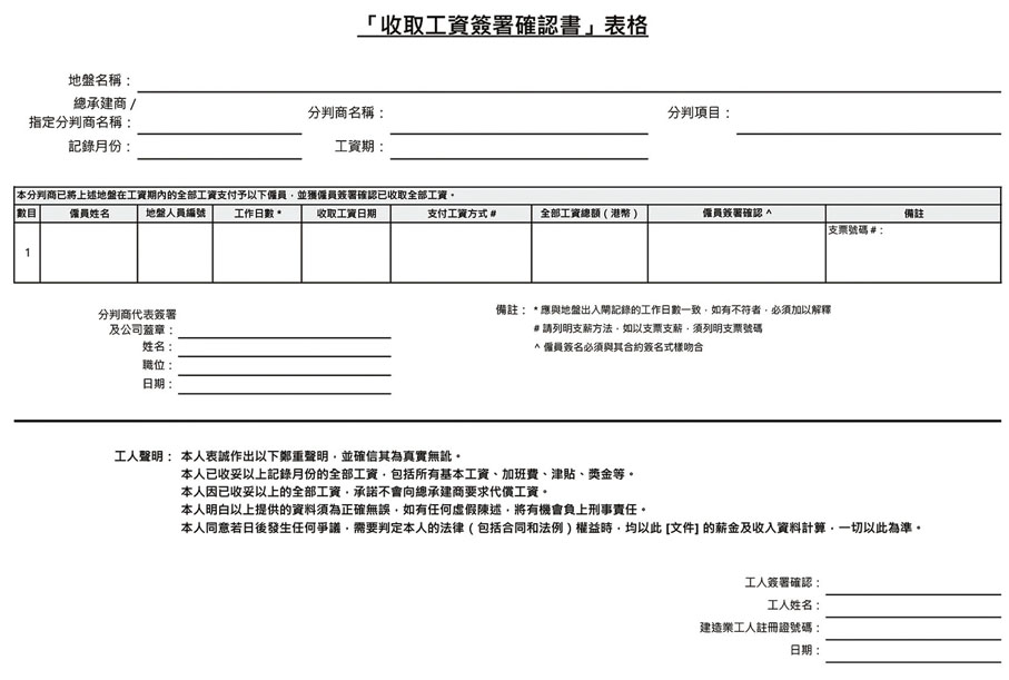 為避免再發生薪金糾紛,商會於今年10月已制定具法律效力的「收妥全數薪金款項確認書」,並發給會員公司,協助工友確認已收到全部薪金,含工資、獎金、津貼等。商會呼籲所有會員公司要求其分判商全面使用有關確認書,並根據個別及具體情況自行修訂內容,同時向工友廣泛宣傳,讓工友清晰認知自身權益,獲合理保障。