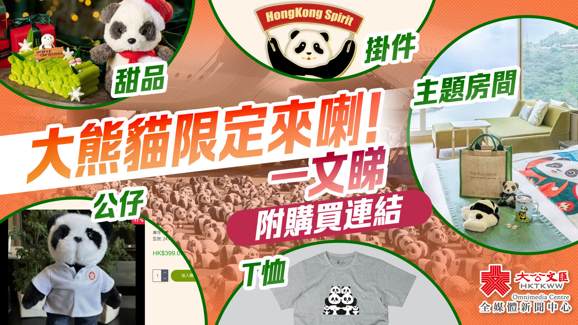 除海洋公園的大熊貓限定禮品外,特區政府禮品店和本港許多商家,亦推出各類可愛的大熊貓限定產品,包括大熊貓毛公仔、特色甜品等等,海洋公園酒店更有主題房間帶你沉浸式感受大熊貓的憨態可掬。