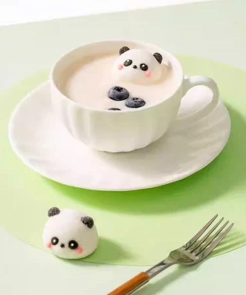 如果擔心食不完5吋蛋糕,還有小隻「熊貓寶寶出沒」甜點可以選擇。「熊貓寶寶出沒」呈現大熊貓黑白分明的大眼睛和圓圓耳朵,蛋糕同樣以益力多味慕絲包住乳酪爆珠,造型可愛且口感層次豐富。