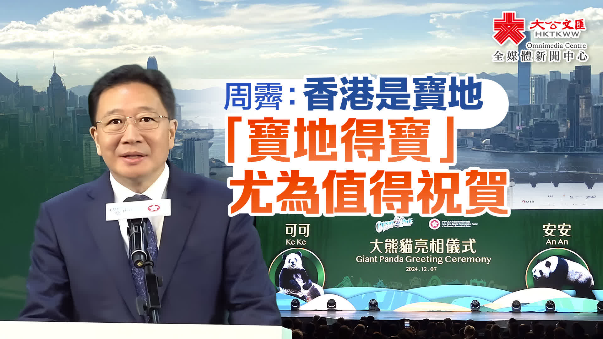 周霽表示,大熊貓是活化石,也是世界生物多樣性保護的重要物種,相信大熊貓來港一定能夠進一步激發大家敬畏自然、熱愛自然、珍惜生命的想法。相信特區政府與中央通過合作,亦能進一步拓展對野生動物的保護,共同加快推進生態文明的建設。