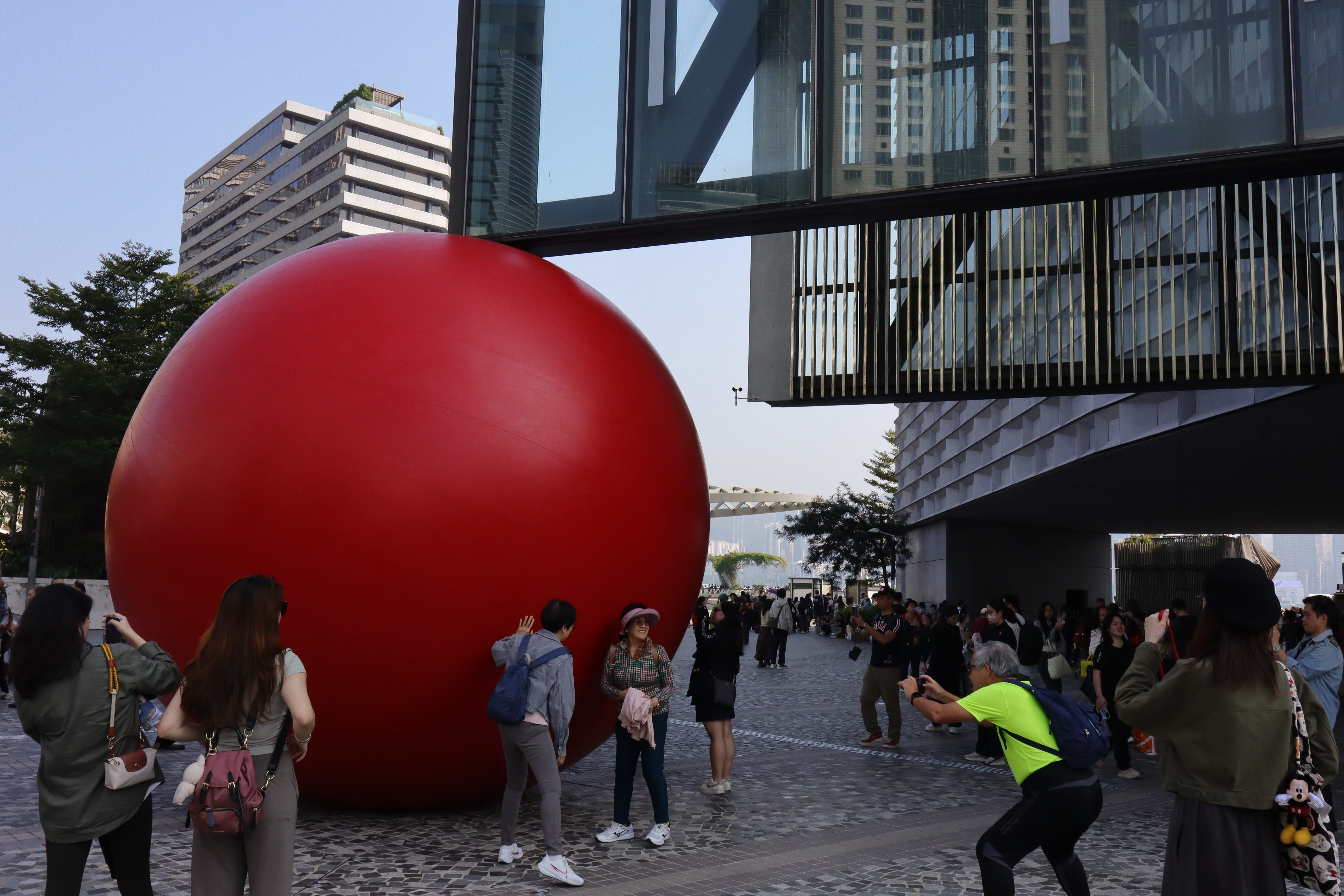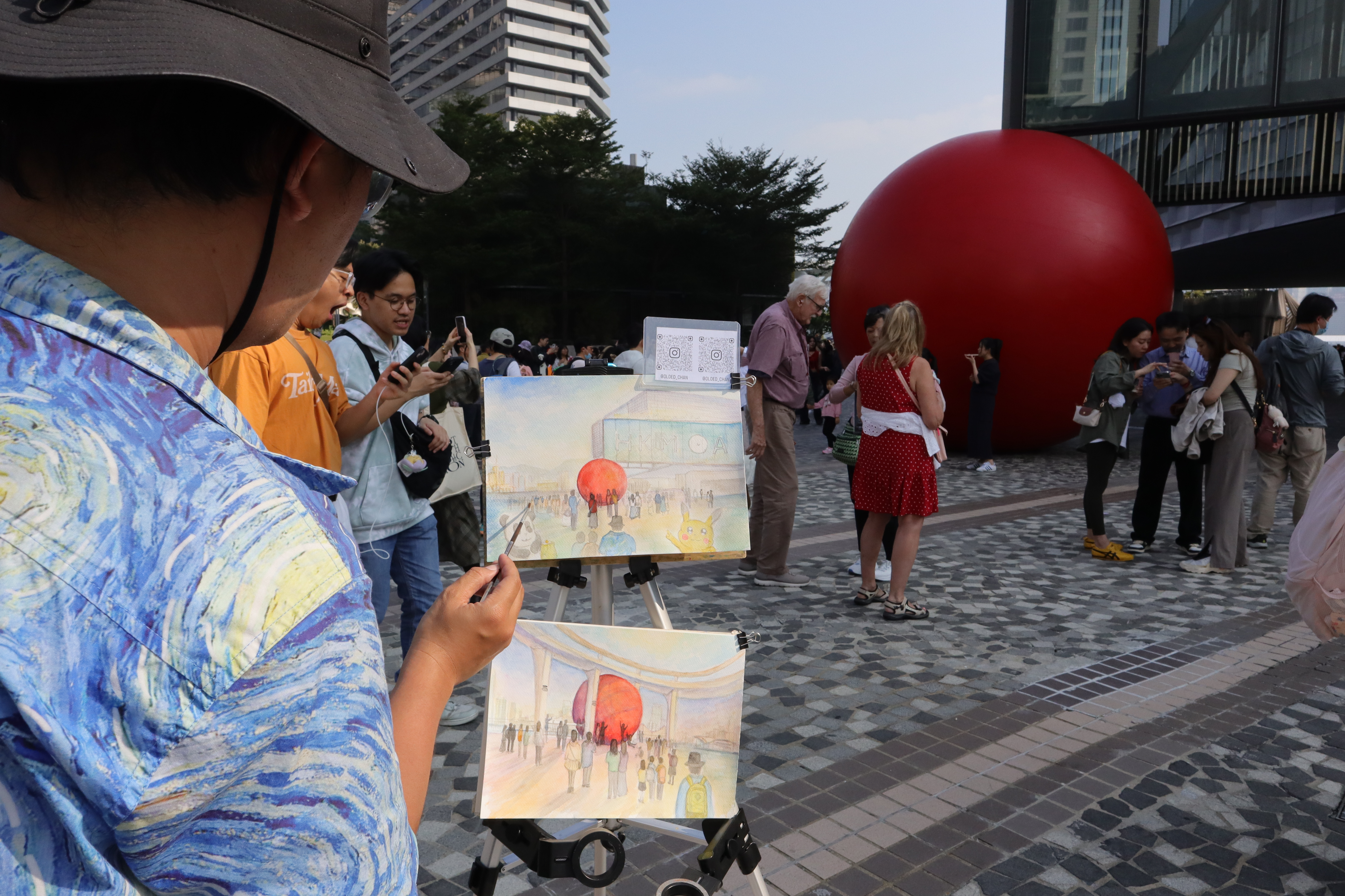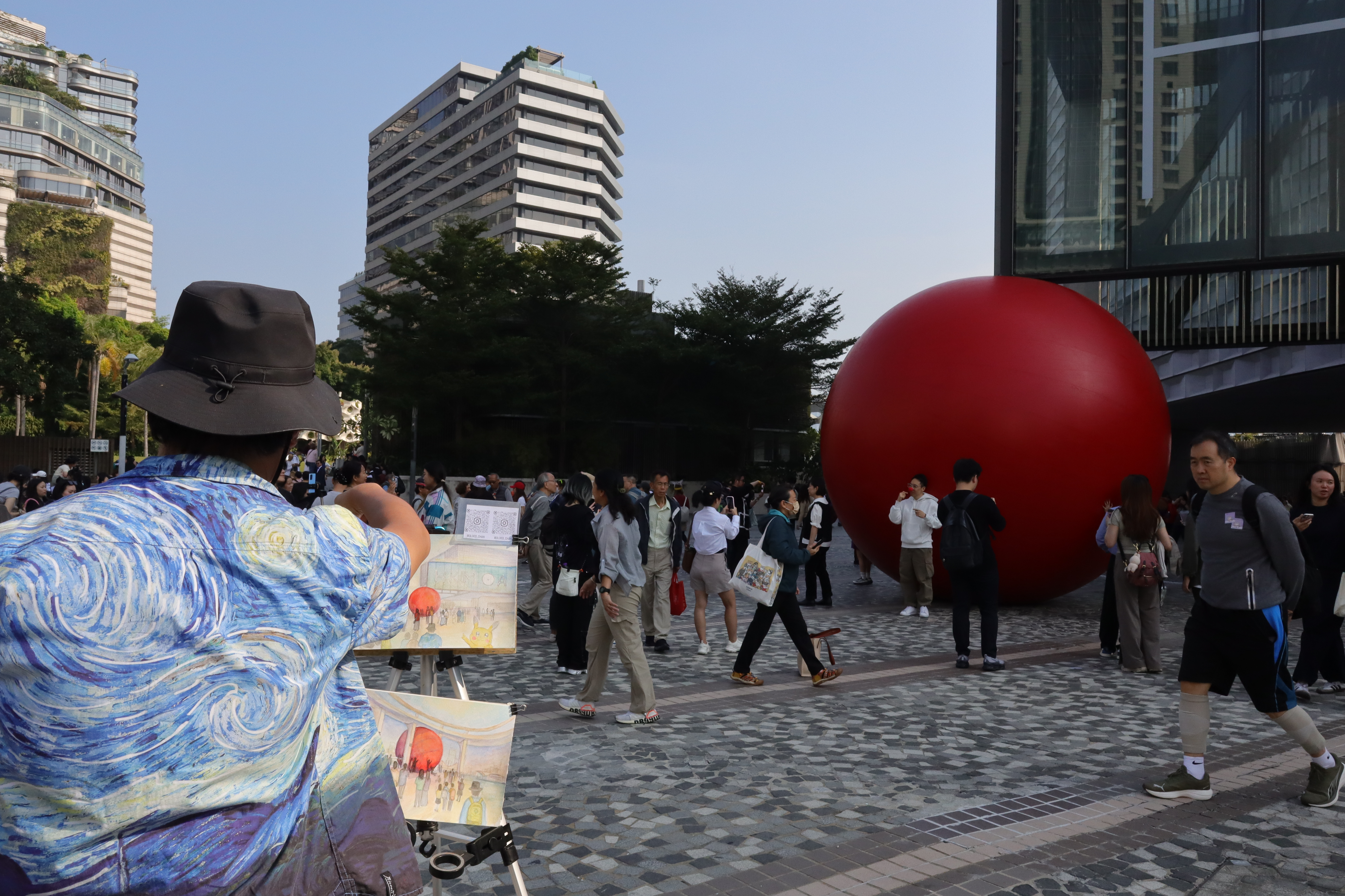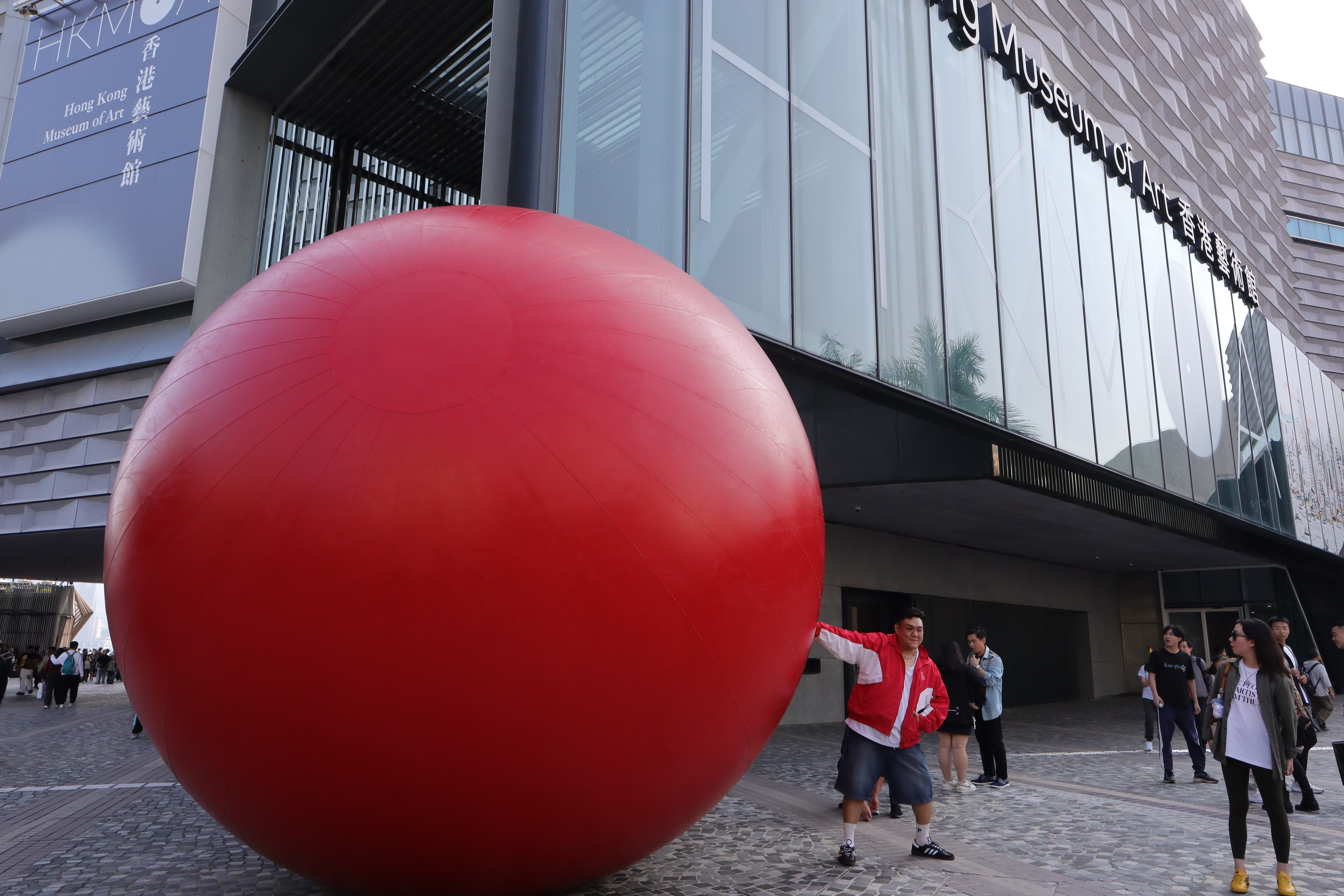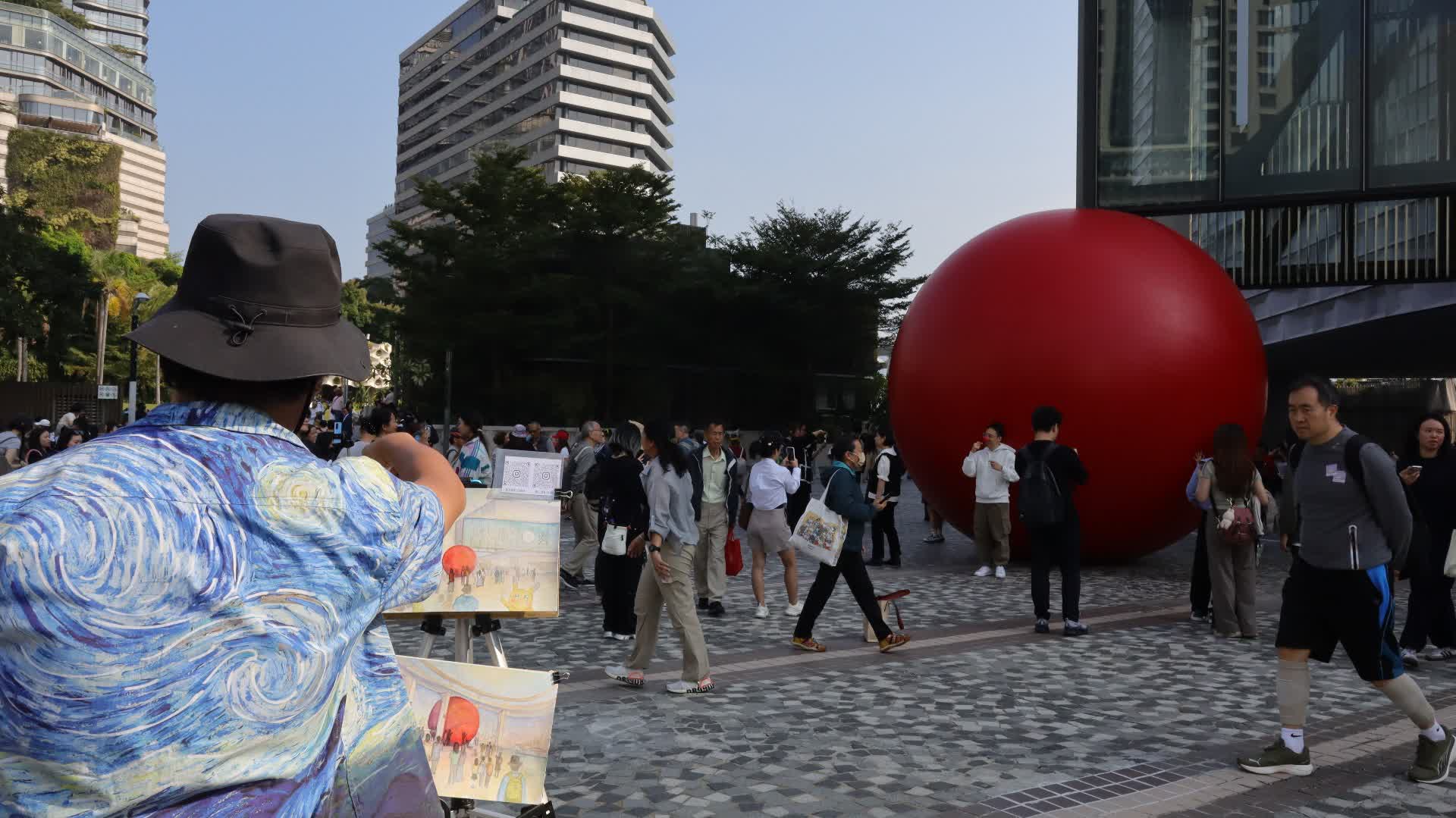 大公文匯全媒體報道,美國當代藝術家Kurt Perschke發起的「紅球計劃」昨日(6日)起登陸香港,並於今日(7日)閃現香港藝術館。點新聞記者見到,現場有畫家以畫筆將紅球定格。有不少市民及遊客前來與紅球合影打卡。