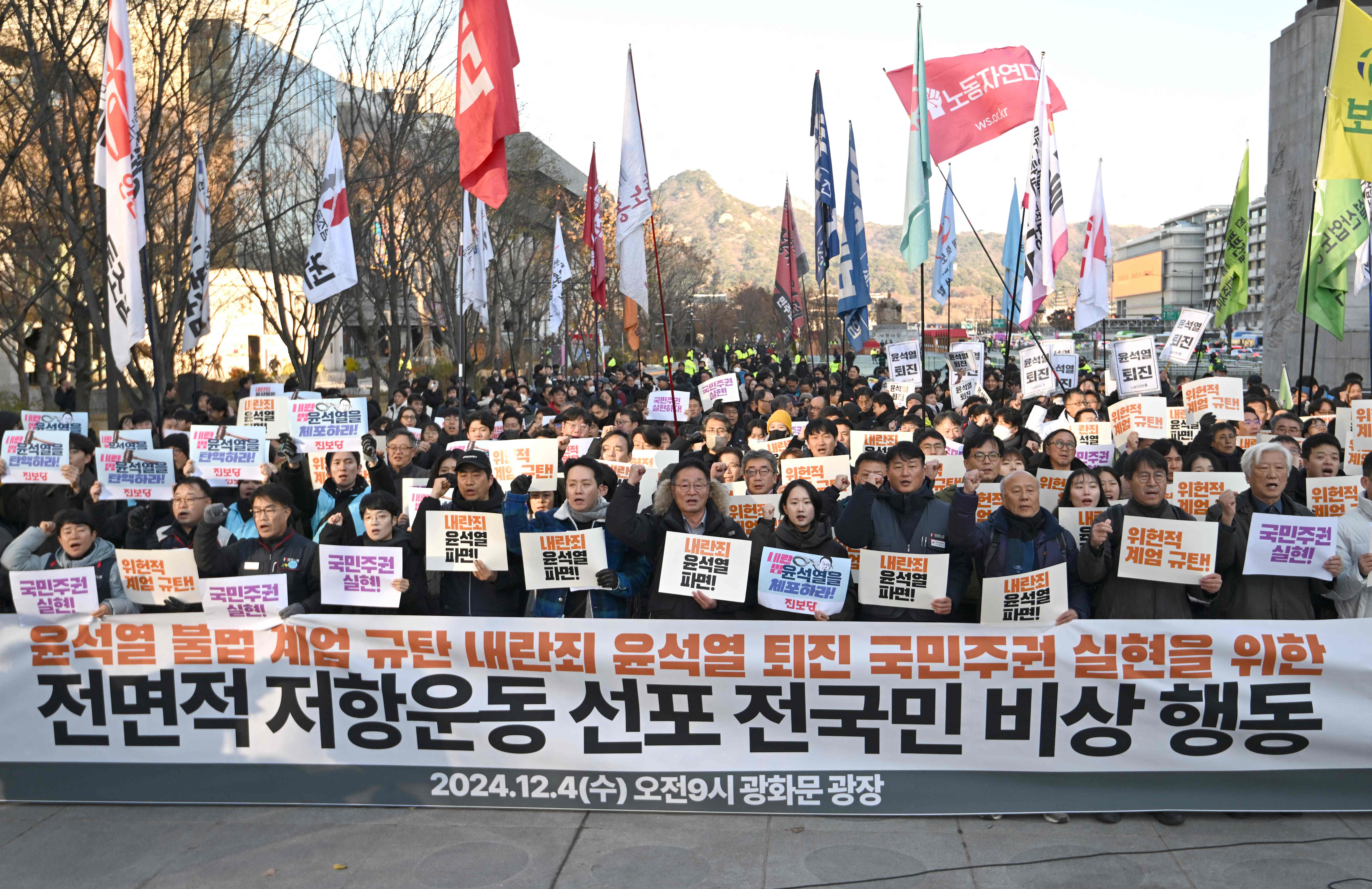 大公文匯全媒體報道,2024年12月3日22時,韓國總統尹錫悅在首爾緊急發表電視講話,表示共同民主黨為首的國會反對黨為「親朝鮮勢力」,通過「反國家活動」使政府癱瘓,並宣布全國進入緊急戒嚴。此為韓國自1979年全斗煥指揮下的517政變後的再度宣布戒嚴,亦是45年來的首次戒嚴。