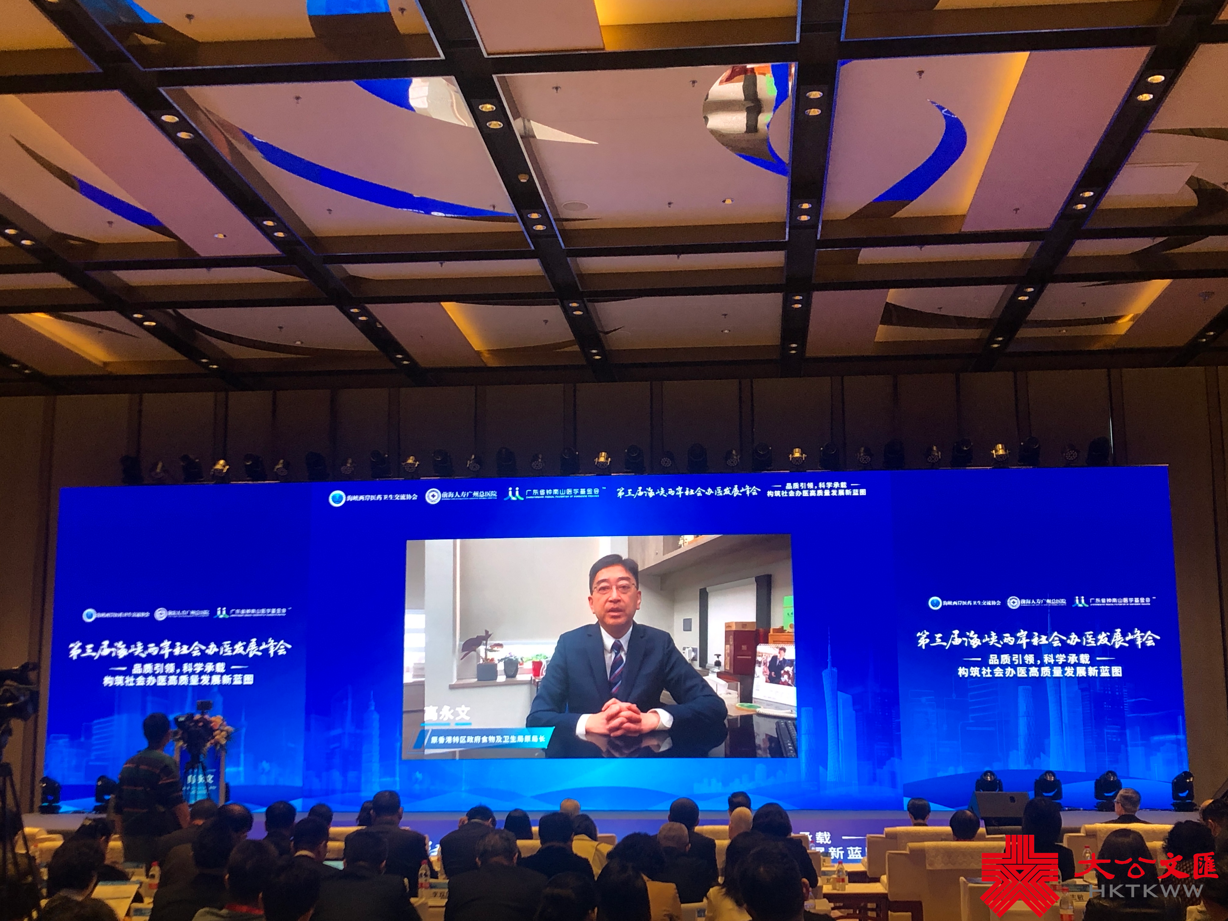 原香港特區政府食物及衞生局局長高永文在視頻致辭中表示,香港的醫療體系具有「雙軌制」特色,由公營醫療和私營醫療兩部分組成,兩者互相補充,不斷完善醫療服務。公營醫療體系保障基本醫療服務,私營醫療體系在滿足多元化、個性化、便捷化需求方面發揮重要作用。海峽兩岸社會辦醫各自具有豐富的經驗與優勢,在醫療技術、業務管理、人才培訓等方面有很大的合作空間。而本屆峰會為海峽兩岸社會辦醫提供很好的交流與合作平台,促進探索創新發展。