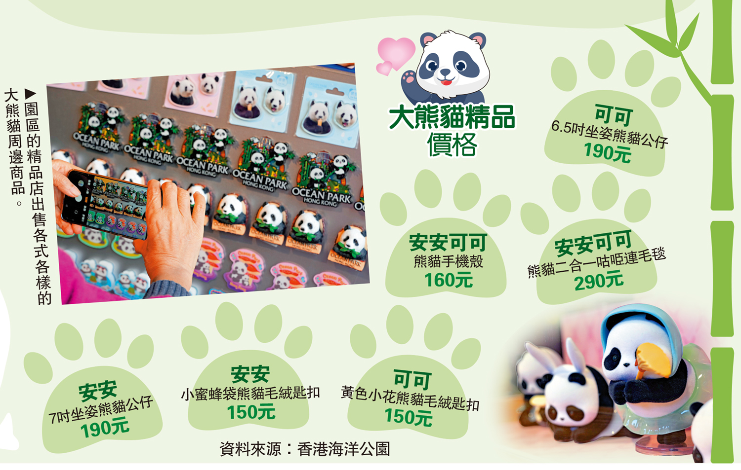 大熊貓「安安」「可可」昨日首度與公眾見面,不少觀眾在探望大熊貓後光顧園區內的精品店,選購大熊貓周邊商品。
