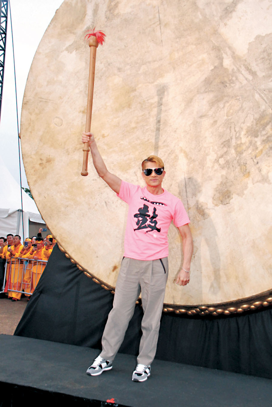 (香港文匯報記者 達里)郭富城(城城)昨日以榮譽大使身份出席《鼓動心弦 連結世界》鼓動嘉年華及音樂會,城城負責擊高達3.47米高的蘭州大平鼓為活動揭開序幕,並與其他主禮嘉賓包括政務司司長陳國基、霍啟剛等人一起主持放禮炮儀式,香港中樂團就奏起城城的金曲《強》,場面盛大。