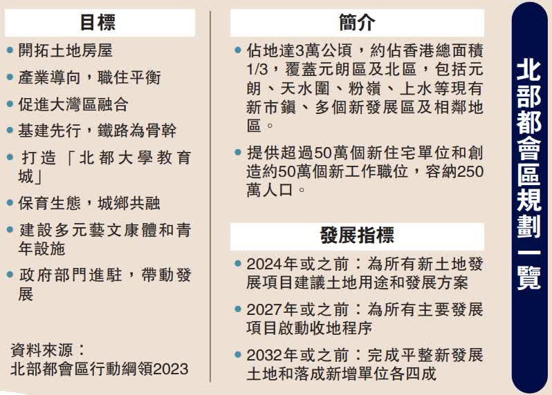 北部都會區規劃會以「產業帶動,基建先行」為主軸,通過區域整合和產業升級,打造香港未來的新經濟增長點,成為香港融入國家發展大局的重大節點。