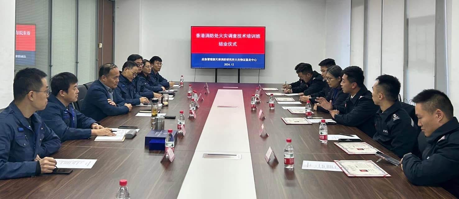 消防處7名火警調查專隊人員聯同2名政府化驗師,在11月24日前往應急管理部天津消防研究所,參加為期12日的「火災調查交流與技術培訓班」。