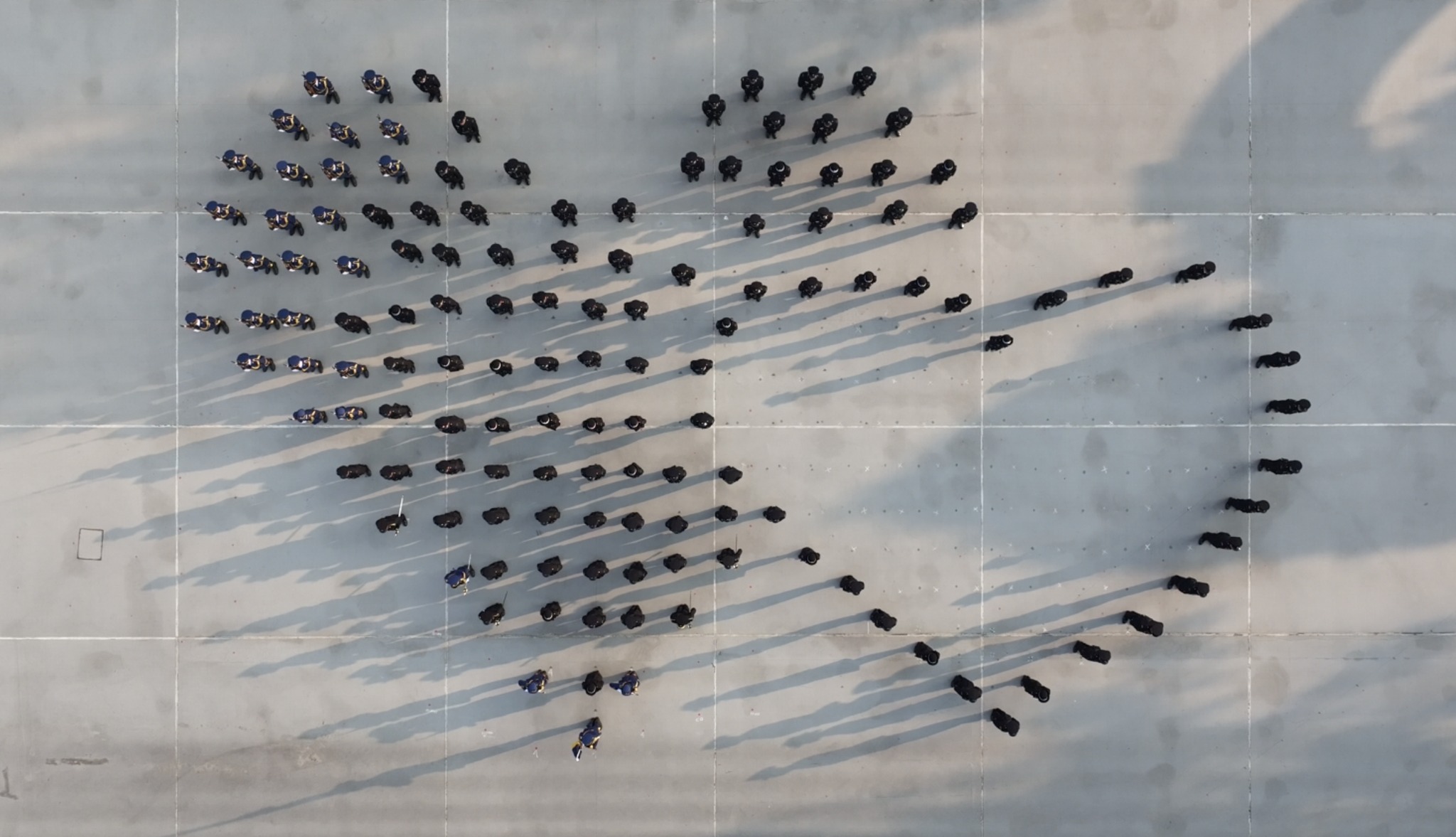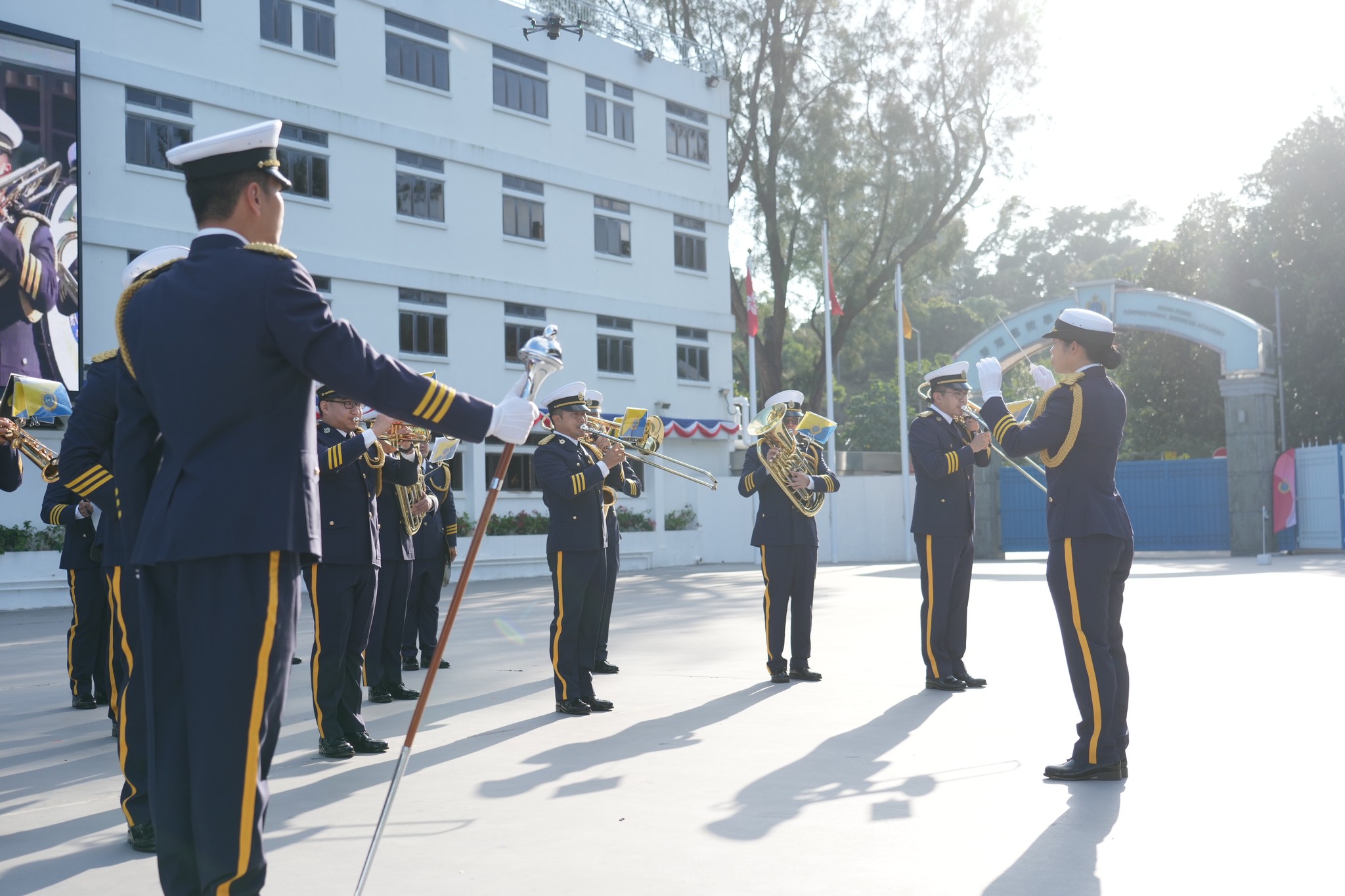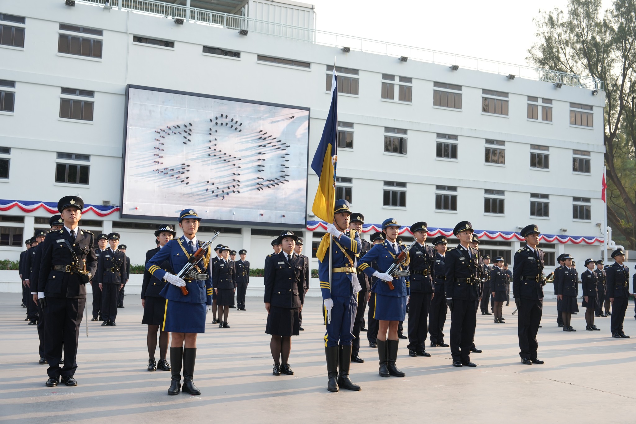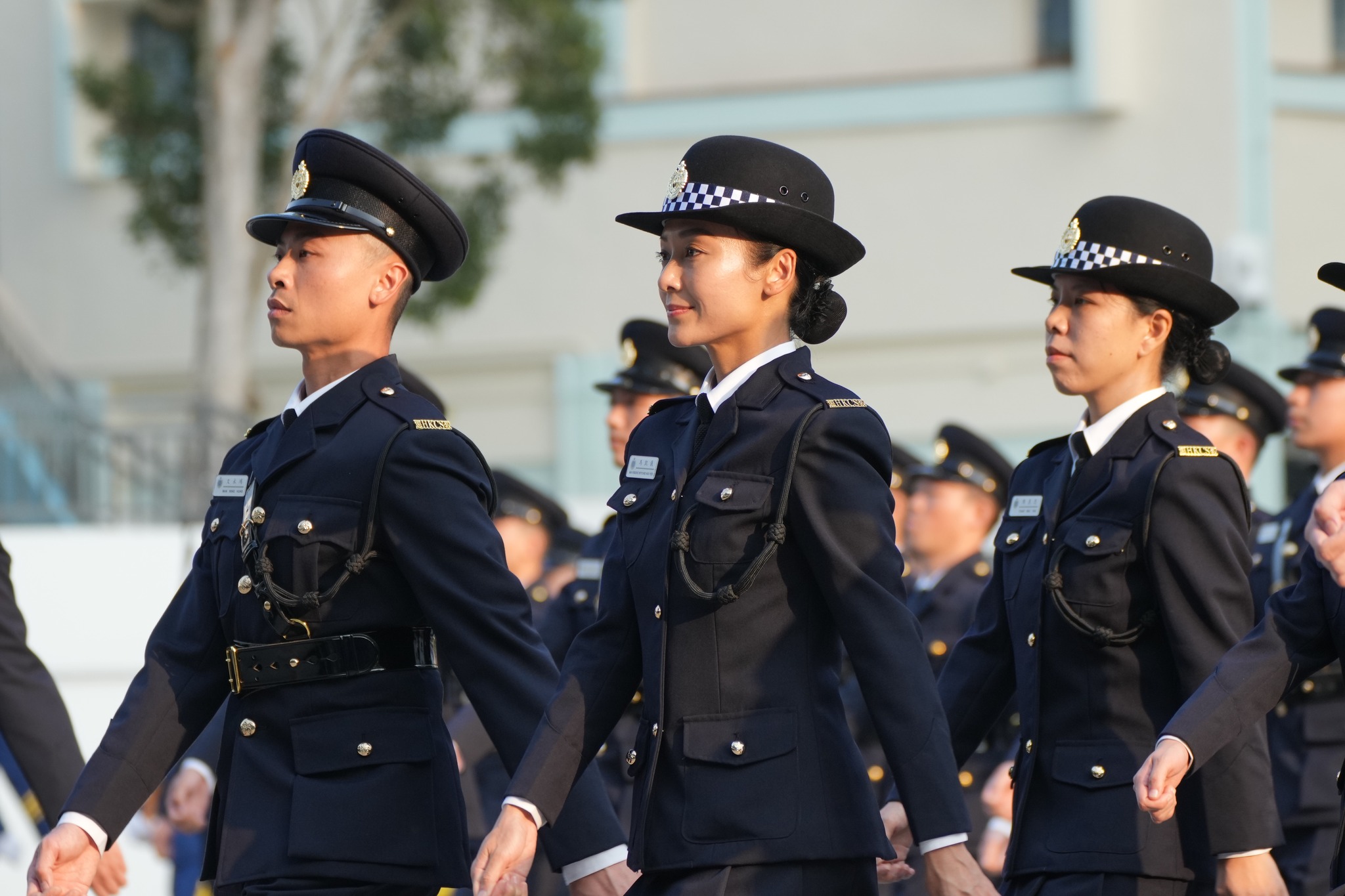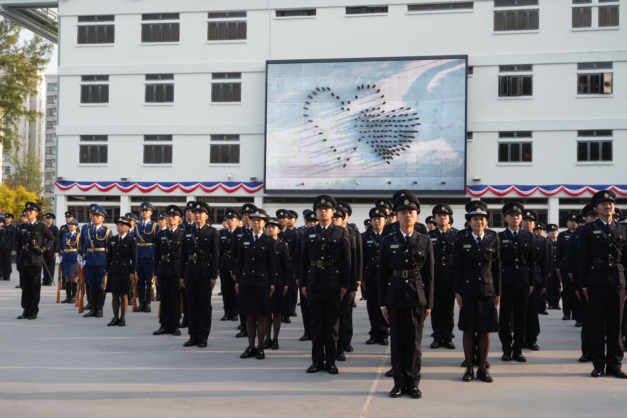 懲教署學員結業會操上星期在香港懲教學院舉行,105名二級懲教助理順利完成23周的專業訓練,展開事業旅程的新篇章。在會操裡,懲教署儀仗隊聯同結業學員以整齊步伐拼出不同的心形組合圖案,代表懲教署心繫家國,並與社會各界伙伴「心連心」協作,以堅定的決心守護刑事司法體系的最後防線。