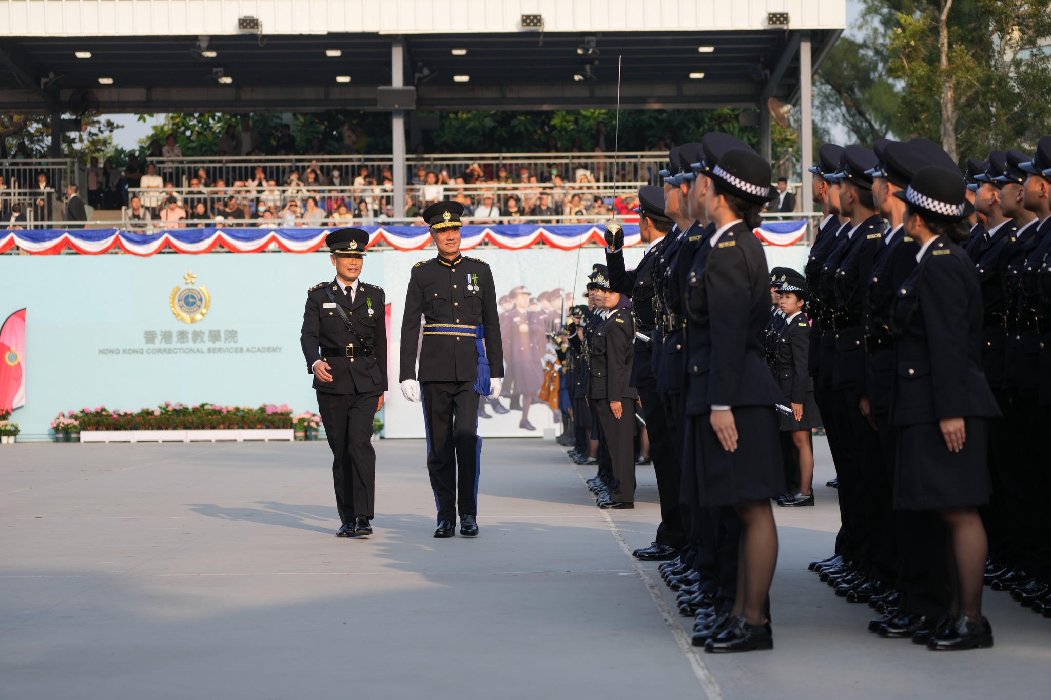 一眾懲教生力軍,在即將展開退休前休假的懲教署副署長(更生及管理)梁建業博士的檢閱下,正式畢業!