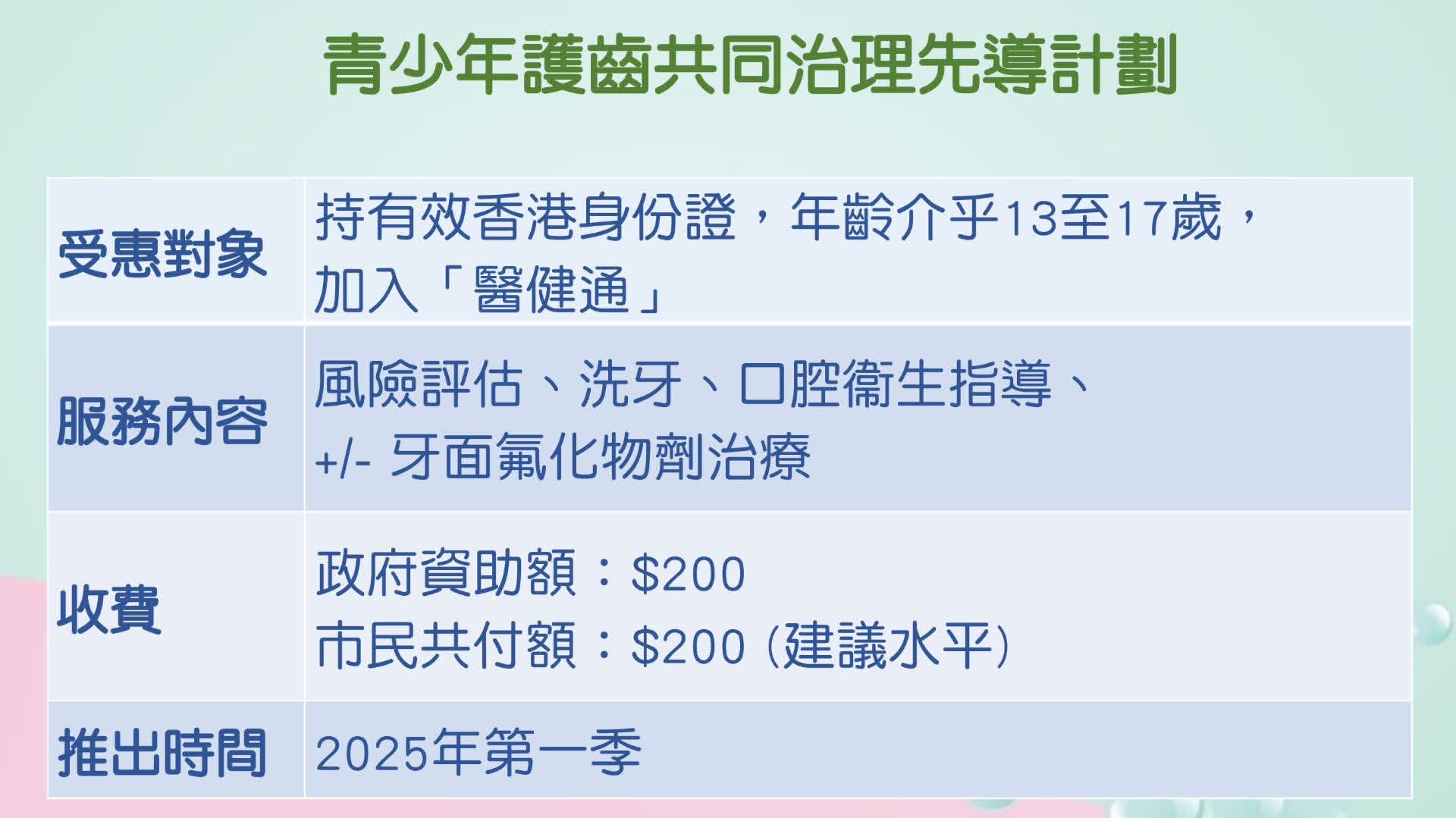 陳松青表示,以學生為對象的學童保健計劃做得相當好,今次計劃是期望中學生也可建立定期口腔檢查的習慣,可在社區選擇牙醫,建立關係。他指出,只要有身份證及有醫健通的13至17歲青少年就可參與,每年獲資助一次。