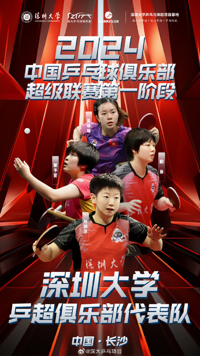 同時,2024賽季深圳大學乒超俱樂部代表隊陣容官宣,孫穎莎領銜出戰12月12日在長沙舉行2024中國乒乓球俱樂部超級聯賽。