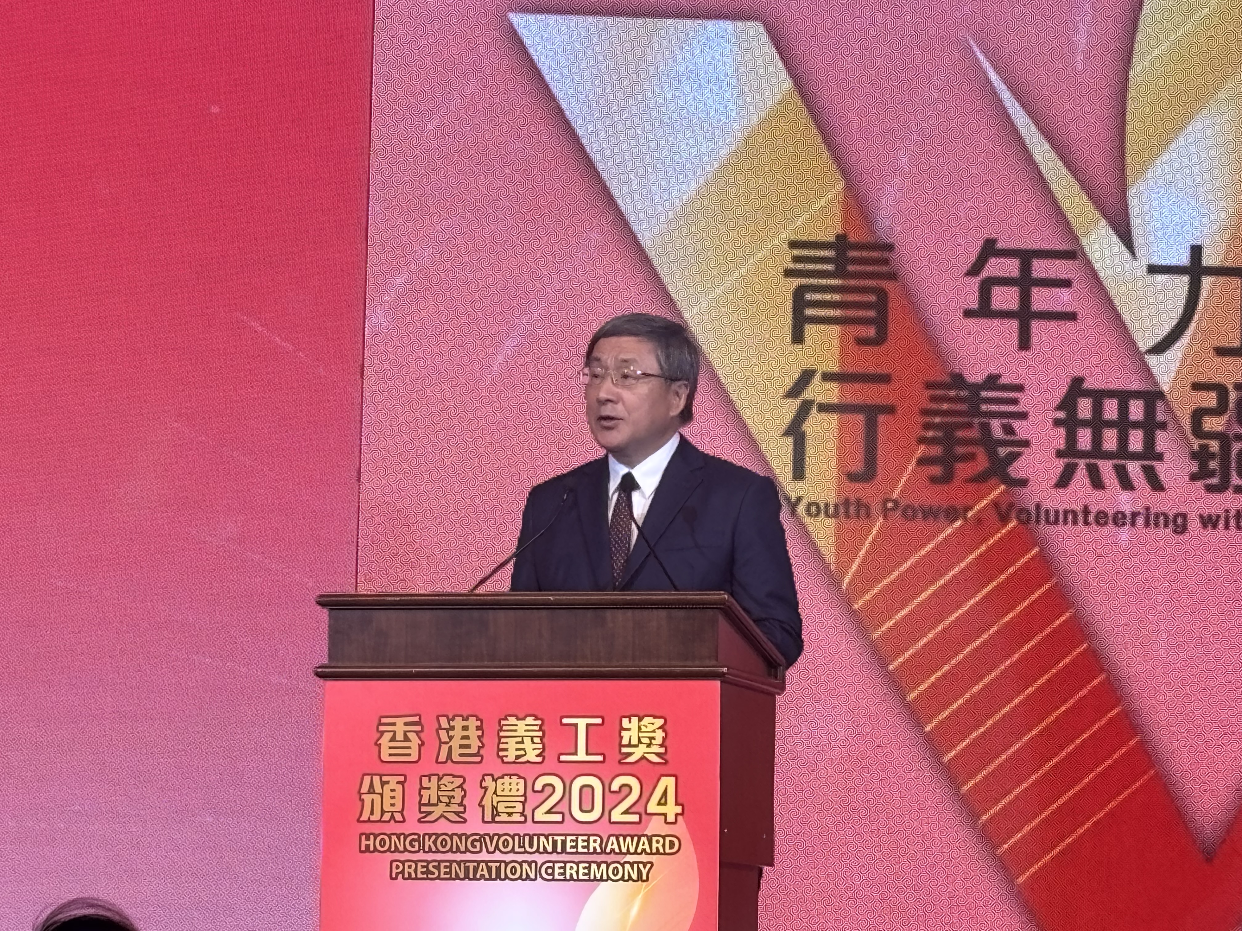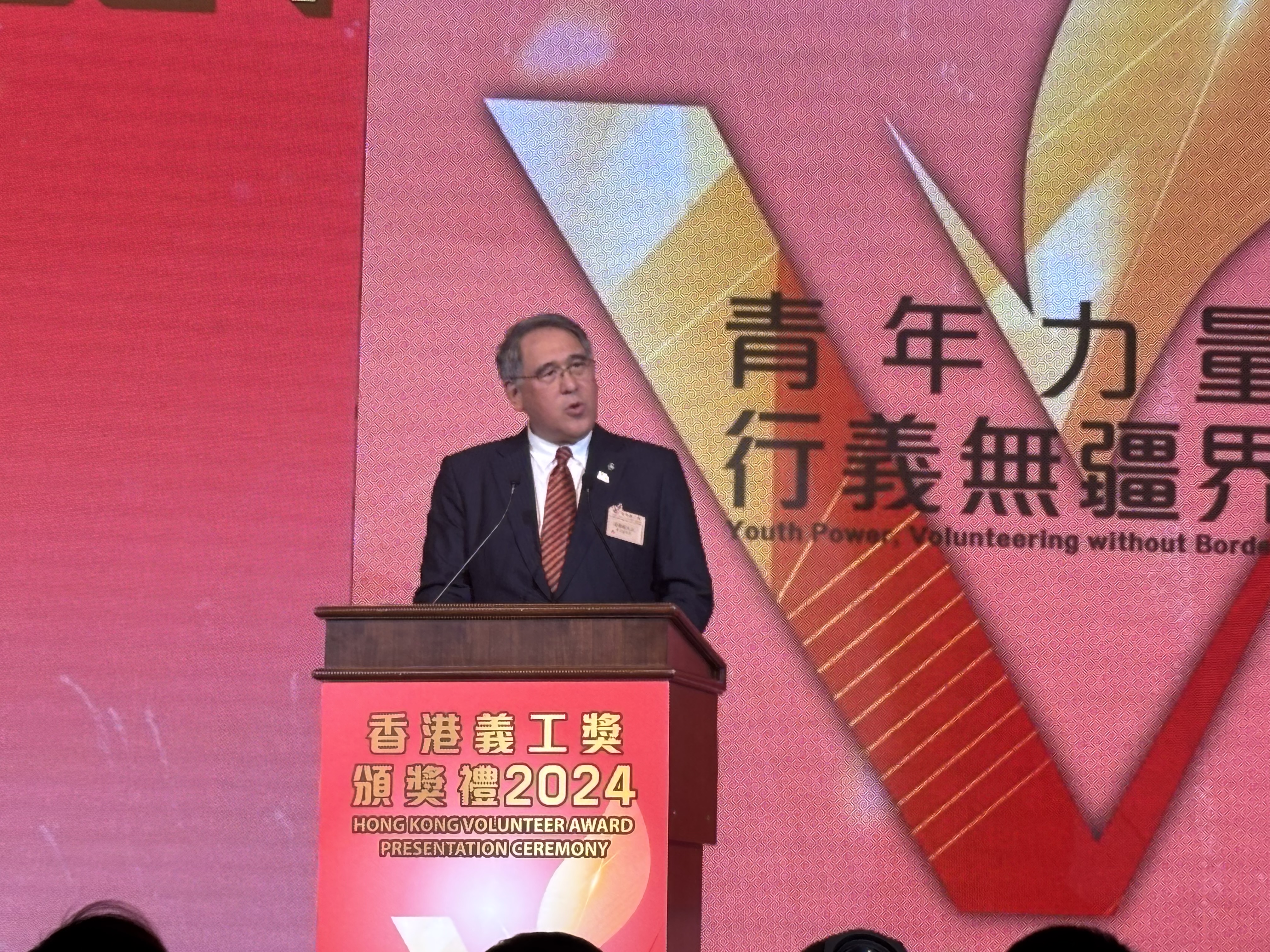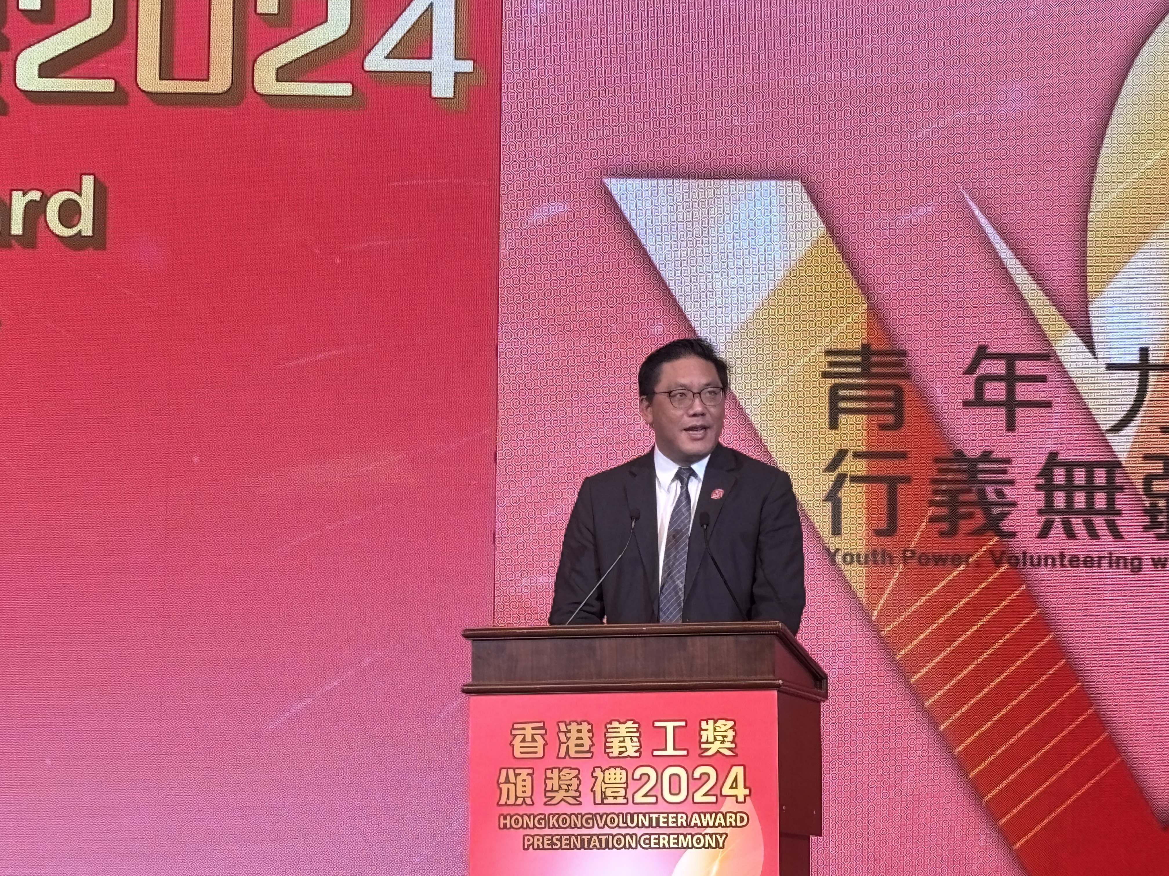 香港特別行政區政務司副司長卓永興在頒獎禮致辭表示,特區政府一直推動和鼓勵社會各界參與義務工作,共建關愛共榮社會,經過多年努力,社會上已有很多非政府機構和民間團體有系統地推進義務工作,幫助社會上有需要的人士共建互助互愛的社會氛圍。特區政府亦身體力行支持義務工作,各政策局和部門已經成立超過70個公務員義工隊。他強調,義工服務種類和形式多元,除了常見的地區探訪,很多大型活動和國際盛事亦常見義工身影,而義工的參與是很多大型項目得以勝利舉辦的重要成功因素之一,參與義務工作除了可以貢獻社會,也可以接觸社會上不同界別人士,拓寬個人和社交網絡,青年人也可以從中學習課堂外的知識和技巧,擴寬視野。