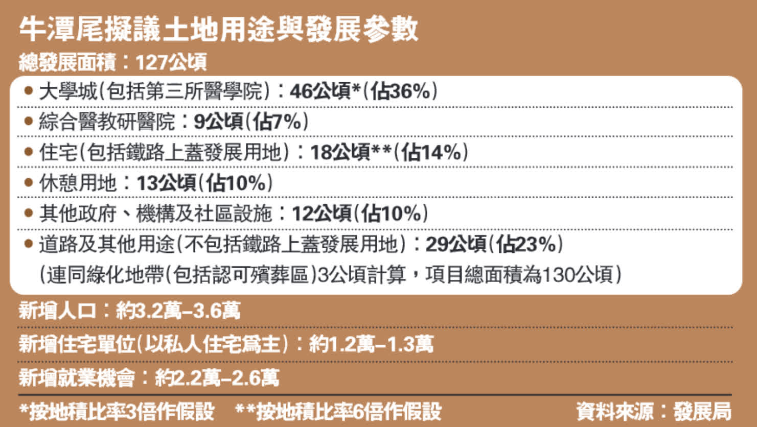 北部都會區統籌辦事處主任丘卓曾透露,北都大學教育城除牛潭尾的46公頃外,洪水橋佔5公頃,新界北亦有約40公頃。