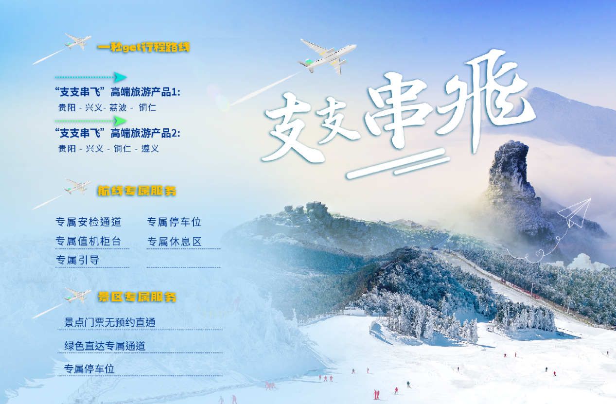 同時,為了打消遊客對於「支支串飛」候機時間的顧慮,興義機場、銅仁鳳凰機場、黔南荔波機場、遵義茅台機場等「支支串飛」機場在地面上推出了專屬引導人員、專屬值機櫃枱、專屬安檢通道、專屬候機區的「五專」服務,為遊客提供暢通無阻的綠色通道。