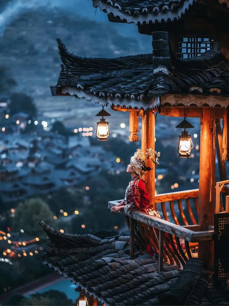 被著名文化學者余秋雨讚嘆「以美麗回答一切」的西江千戶苗寨,是中國乃至世界的最大苗族聚居村寨。這裏白天明亮而絢爛,遊客們穿梭於層層疊疊的吊腳樓間,沿街苗族銀飾、苗綉手工藝品店舖鱗次櫛比;這裏的夜晚萬家燈火璀璨,宛如散落于山間的點點繁星,讓人感覺誤入《千與千尋》的動畫世界。當然,如此景致也為旅拍業的發展提供了豐富的取景元素。於是,銀飾搖曳的苗寨少女、鮮衣怒馬的漢服少年紛紛在西江千戶苗寨出現,為冬季的貴州平添了一抹魔幻色彩。