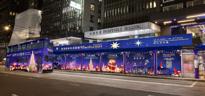 此外,中環半山扶手電梯、港鐵站電子屏幕、位於尖沙咀的旅發局旅客諮詢中心更換上聖誕新裝,冬日節慶氣氛全城滿載!