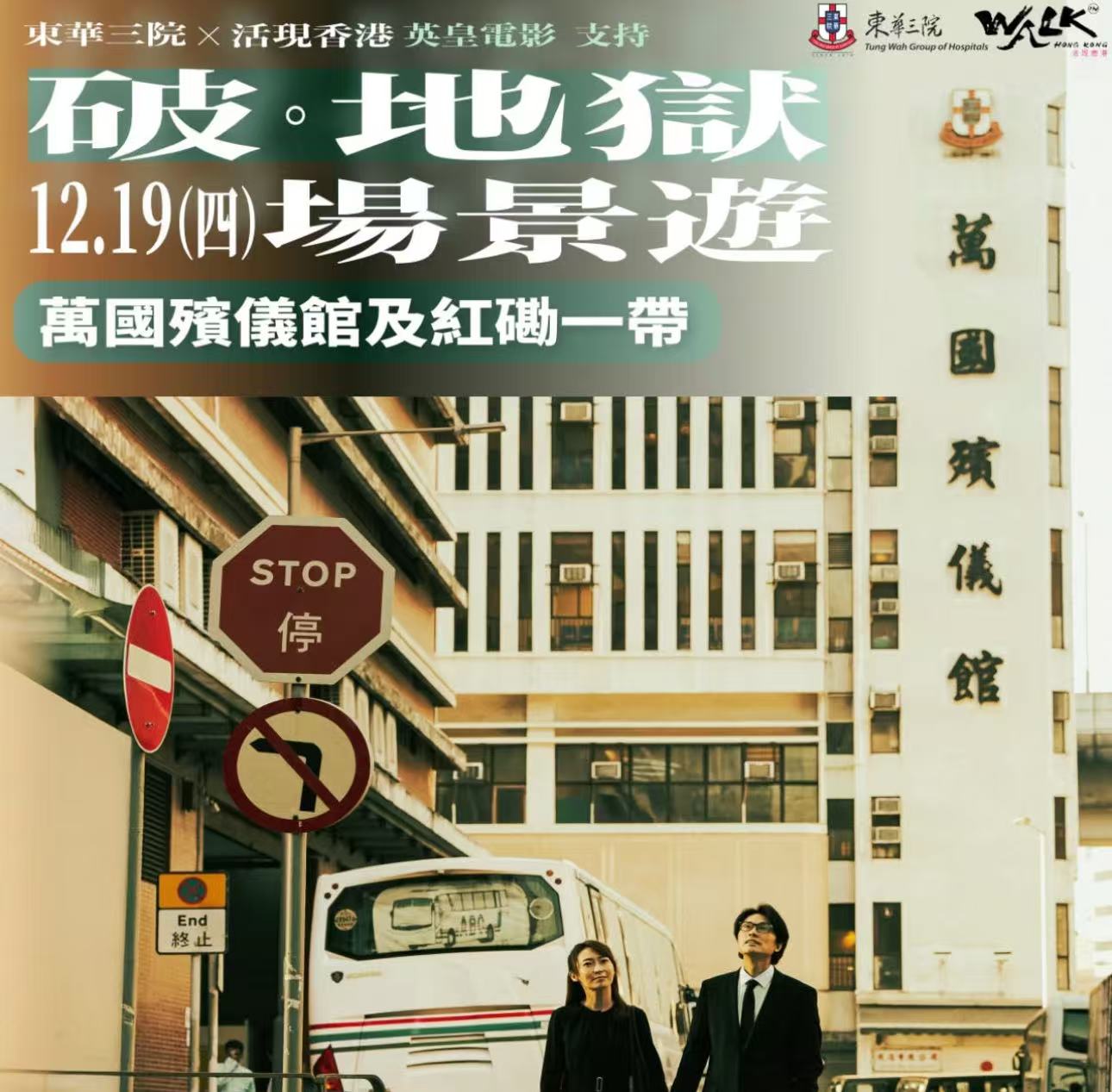 為讓廣大影迷感受到電影、旅遊與歷史文化的結合,繼早前「《破·地獄》場景遊:東華義莊的歷史印記」推出之後,東華三院與活現香港再次聯合推出「《破·地獄》場景遊:萬國殯儀館及紅磡一帶」。本次活動將先帶領參加者遊覽萬國殯儀館附近的街道,重溫電影中的經典場景,並在活動的下半部分進入萬國殯儀館,深入了解華人殯葬文化及生死價值觀。