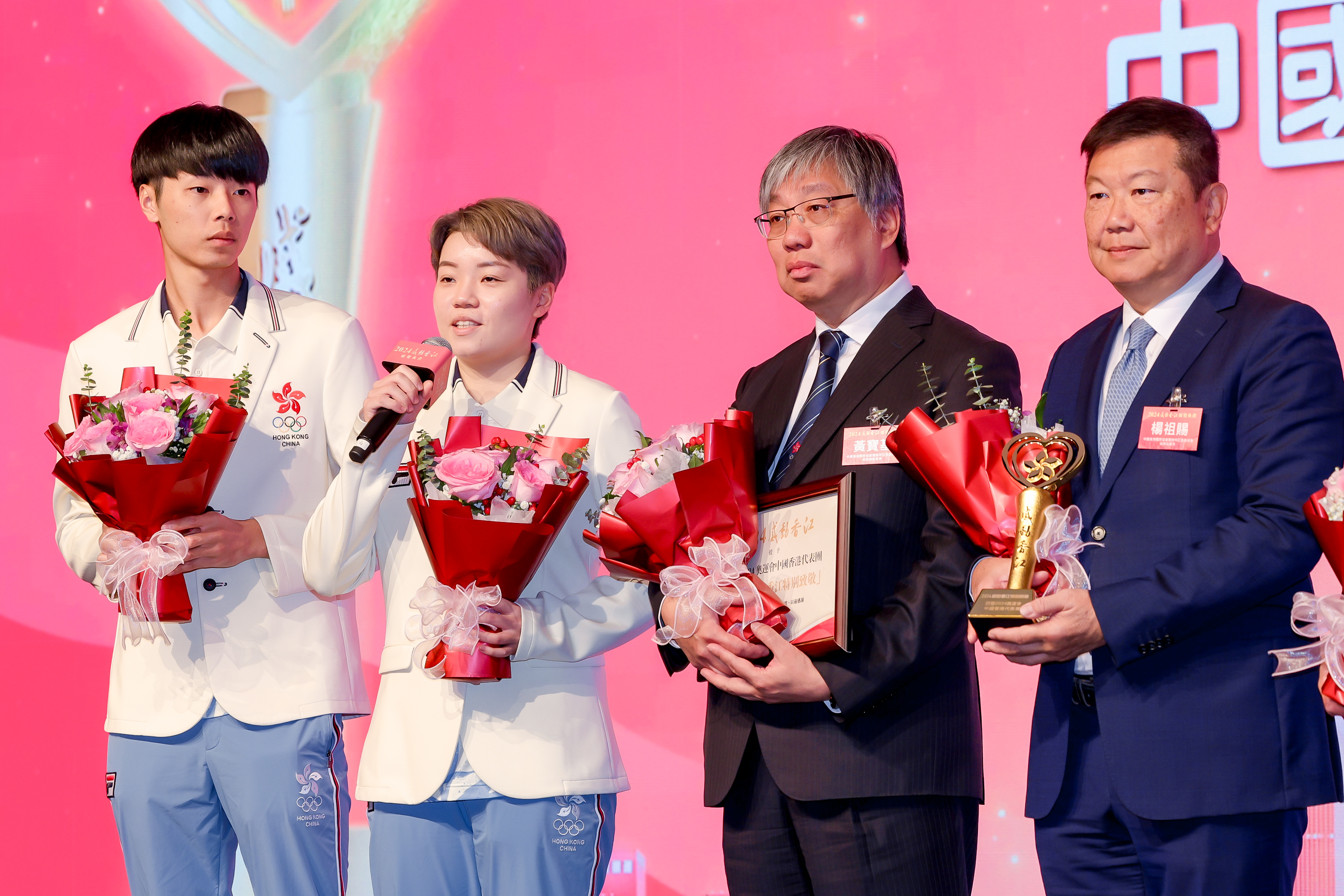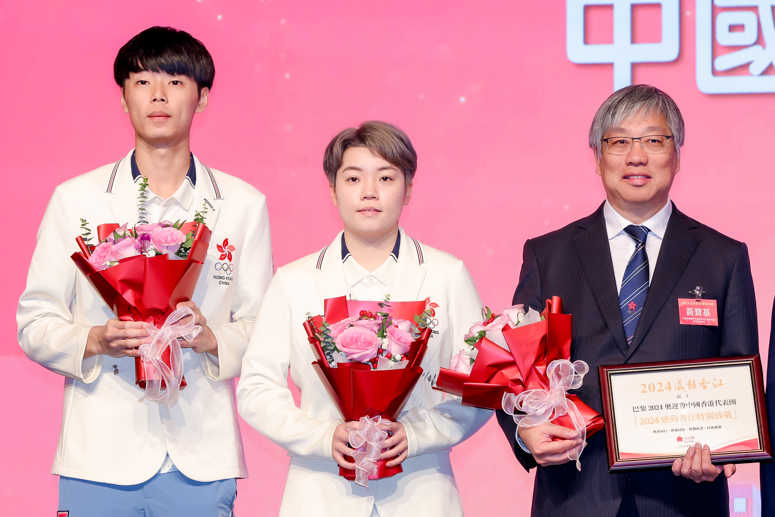 頒獎禮首先公布,「2024感動香江特別致敬獎項」獲獎團體為巴黎奧運中國香港代表團。香港市民曾在這個盛夏與巴黎奧運中國香港代表團一起哭、一起笑,代表團在賽場上每一個瞬間都讓我們動容,因為在賽場上他們展示的不僅是體育精神,更是香港精神。