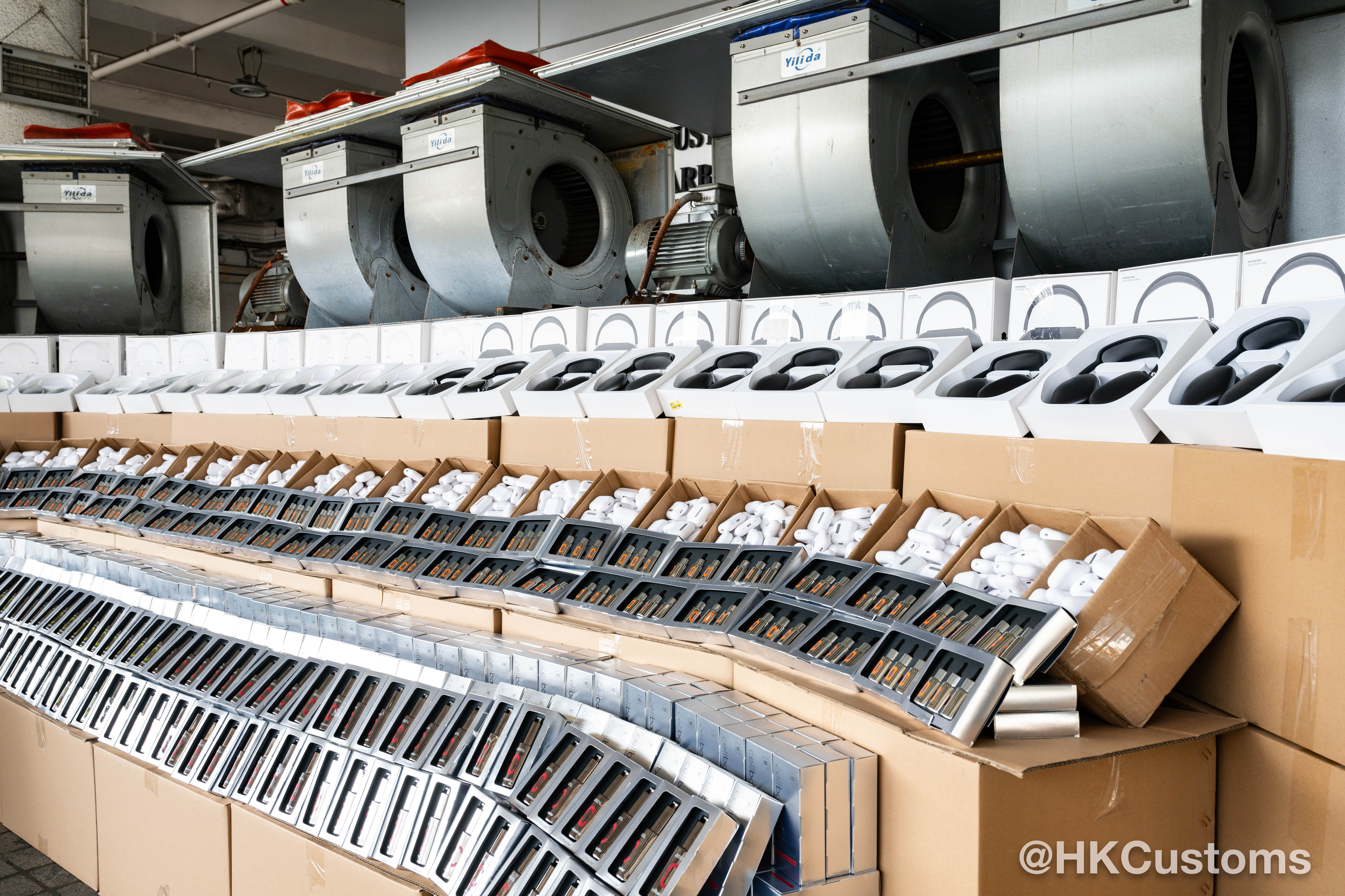 香港海關人員十二月一日鎖定一艘準備由香港前往巴基斯坦的遠洋船作搜查,並在船上一個報稱載有機器、冷氣機、電子零件等的貨櫃內,發現四座機器內藏有大批懷疑走私耳機及護膚品。