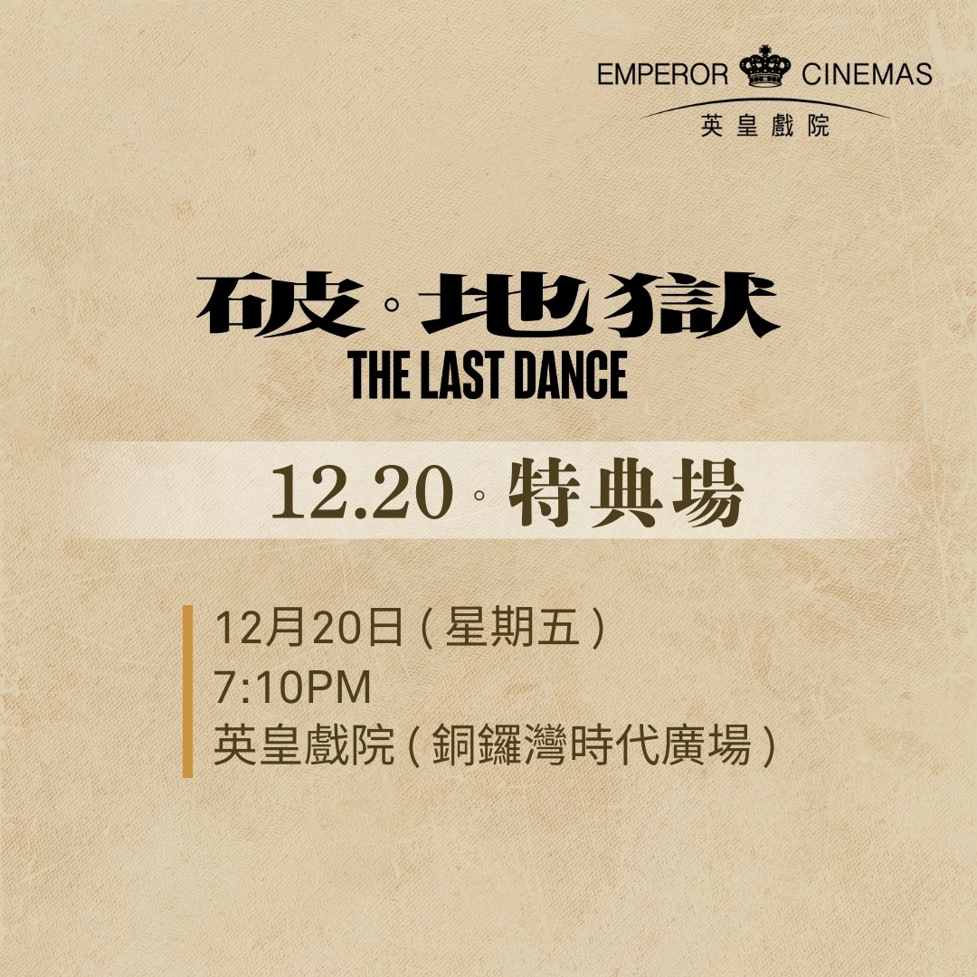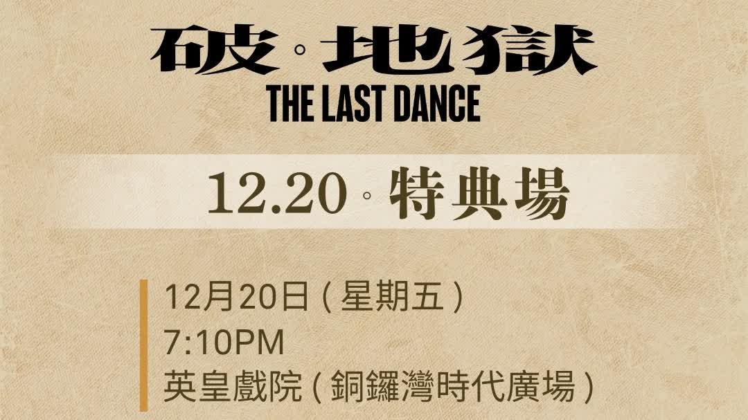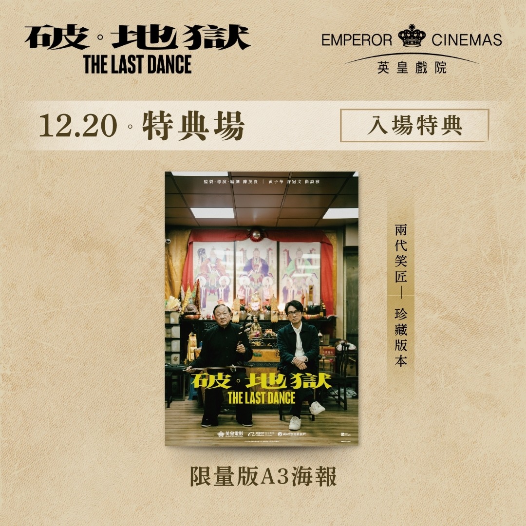 大公文匯全媒體報道,英皇戲院早前舉辦《破·地獄》特典場反應熱烈。戲院宣布,12月20日將加推特典場,全新推出獨家限量紀念品,先到先得!本次特典場,觀眾將有機會獲得別注版托特包,還有全新海報及紀念票,等你來搶!特典場將於今日(12日)下午6點左右開啟預售。
