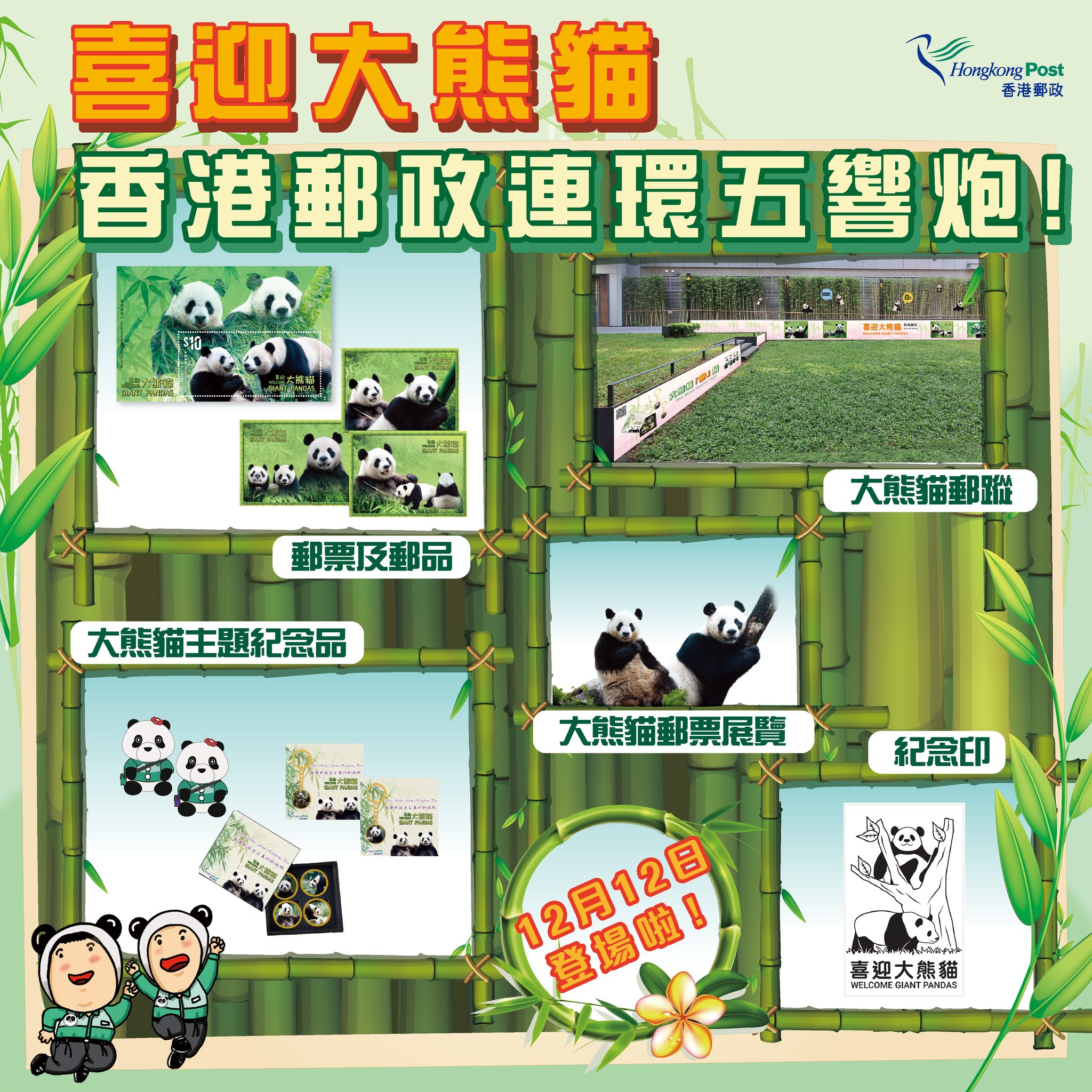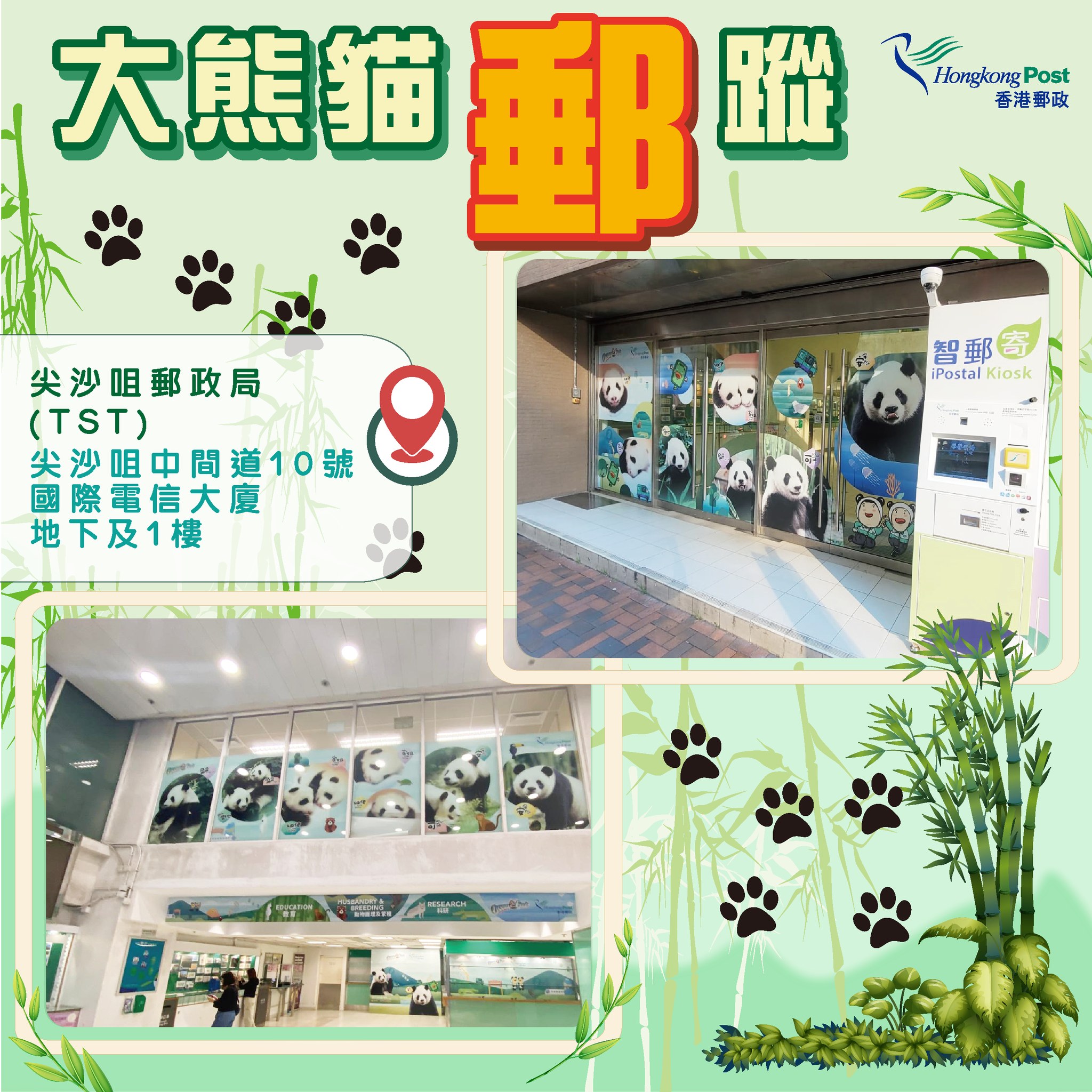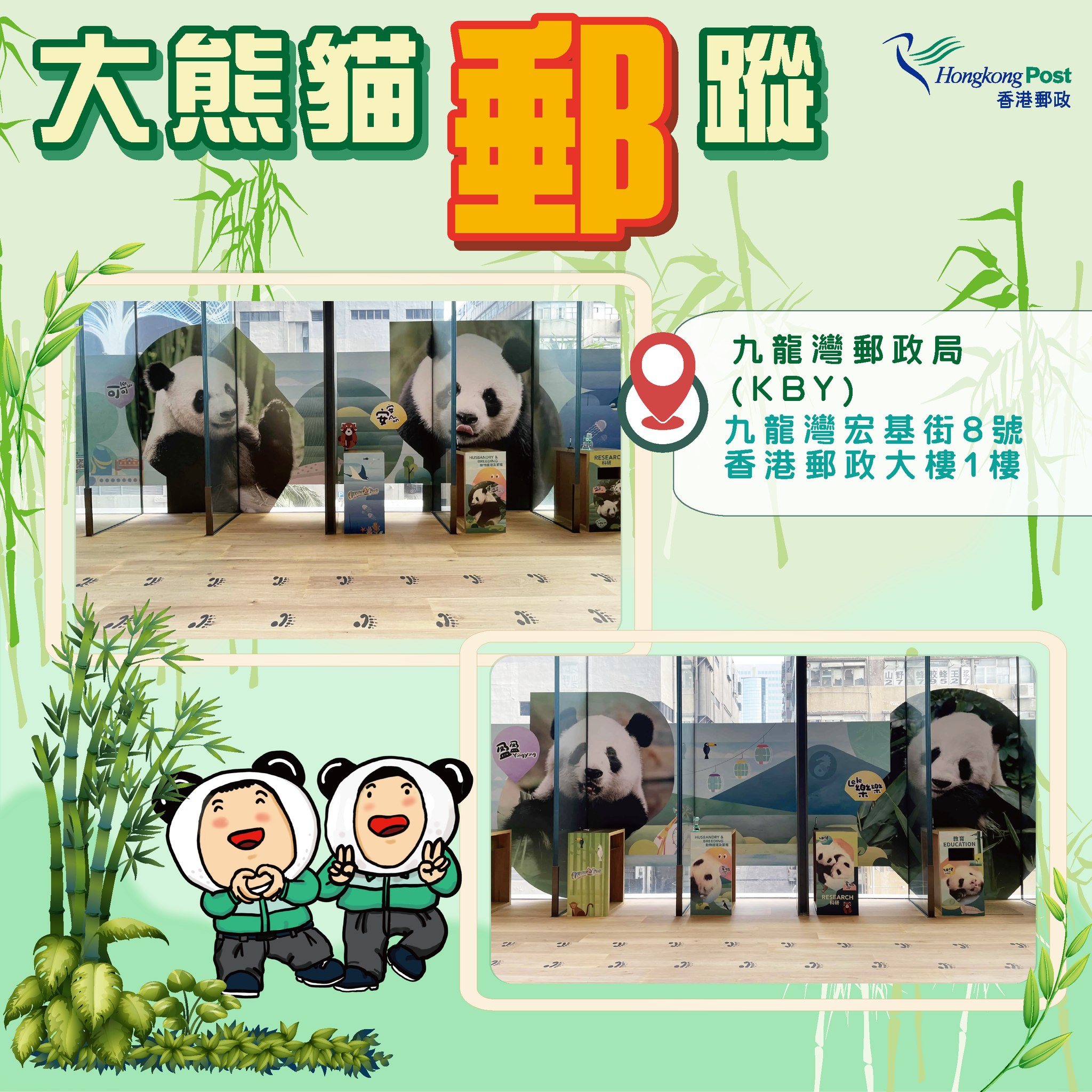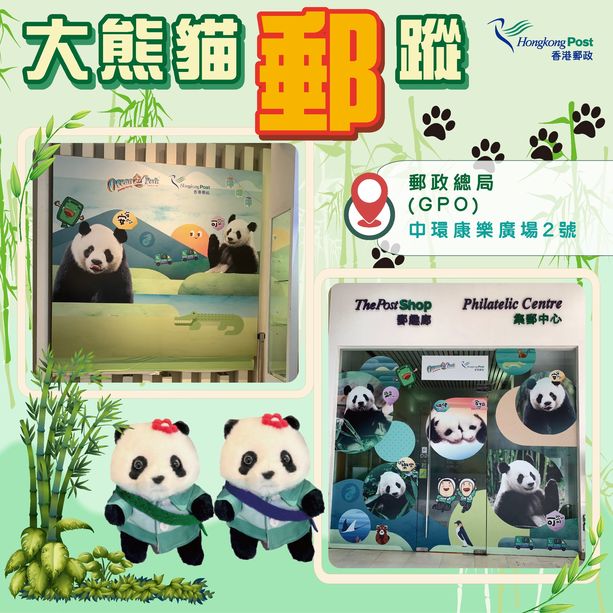 即日起,香港郵政於郵政大樓的郵政廣場、郵政總局郵趣廊、尖沙咀郵政局及九龍灣郵政局特別布置以大熊貓為主題的裝飾,打造全城「打卡」熱點。
