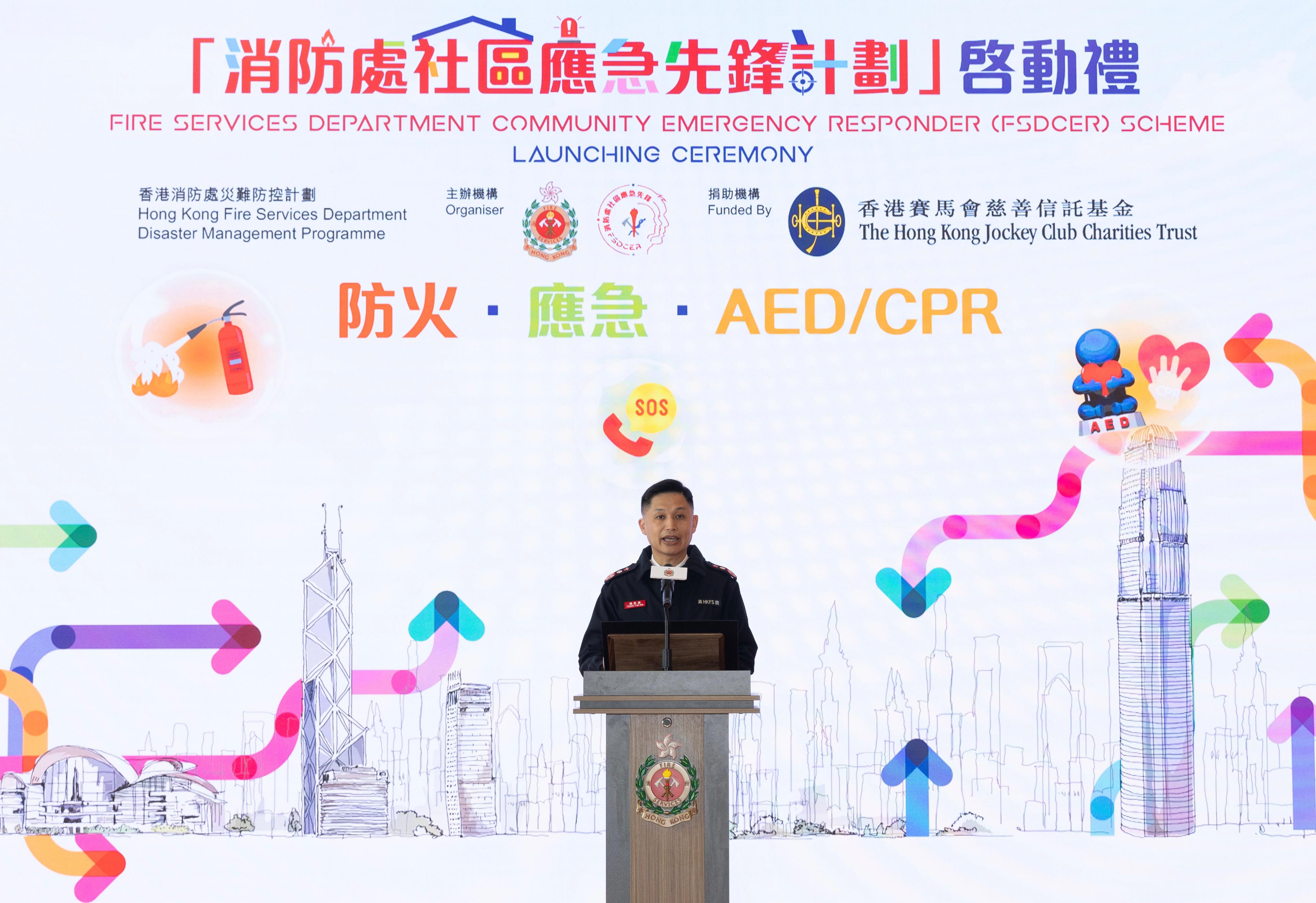 為提升市民大眾的消防安全意識和應急準備能力,消防處今日(十二月十四日)推出「消防處社區應急先鋒計劃」(計劃),招募市民接受防火、應急,以及施行心肺復甦法和使用自動心臟除顫器的訓練,裝備他們成為社區安全的守護者。