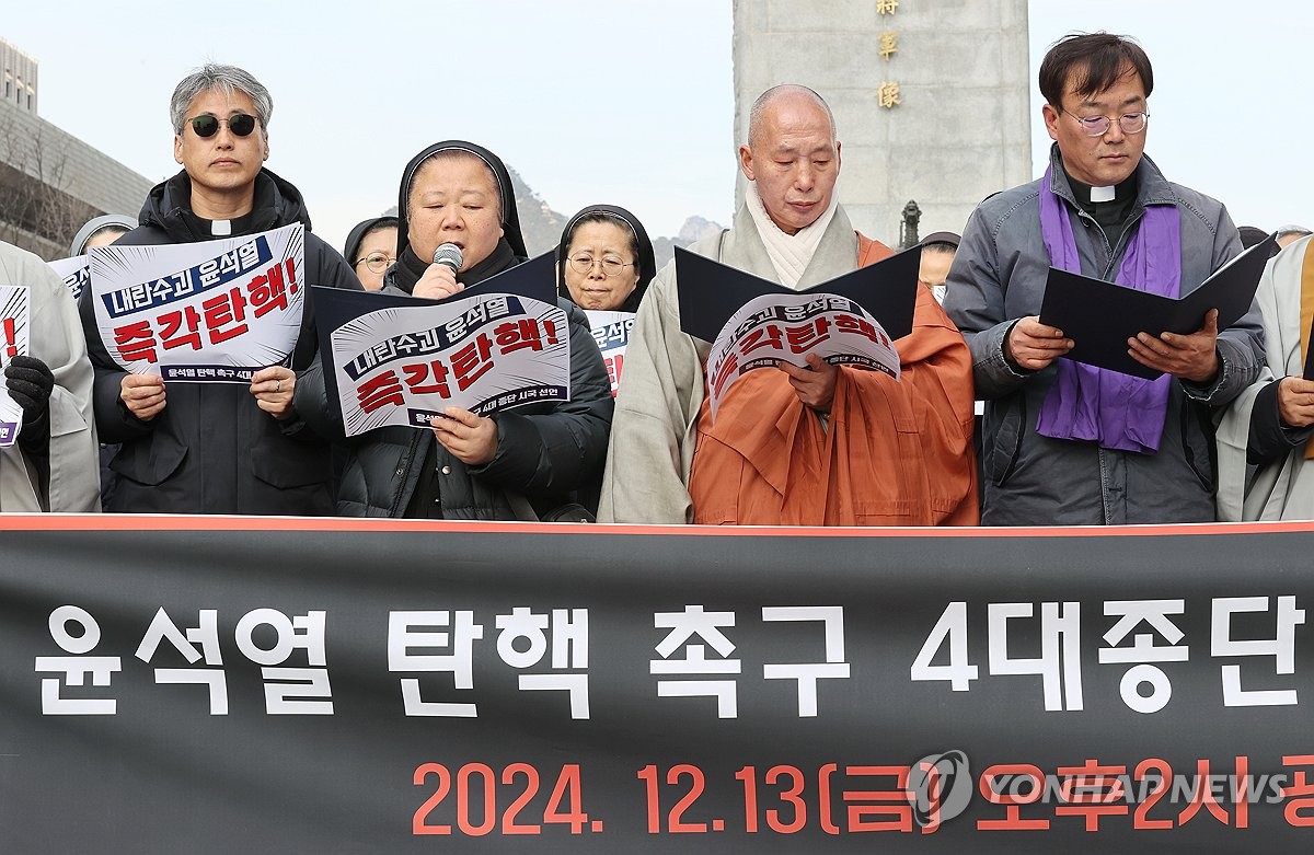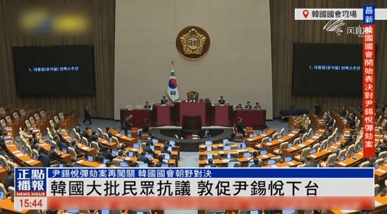 早前,大批韓國民眾示威,高喊「彈劾尹錫悅」、「執政黨解散」等口號,敦促國會表決通過尹錫悅彈劾案,要求尹錫悅下台。