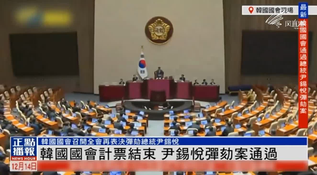 今天(12月14日)下午,韓國國會召開全體會議,第二次表決總統尹錫悅彈劾動議案。