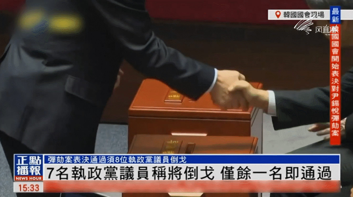 在今天表決前,韓國執政黨國民力量黨召開議員全體會議,作出維持反對彈劾總統尹錫悅動議案的決定,但允許該黨議員參與投票。