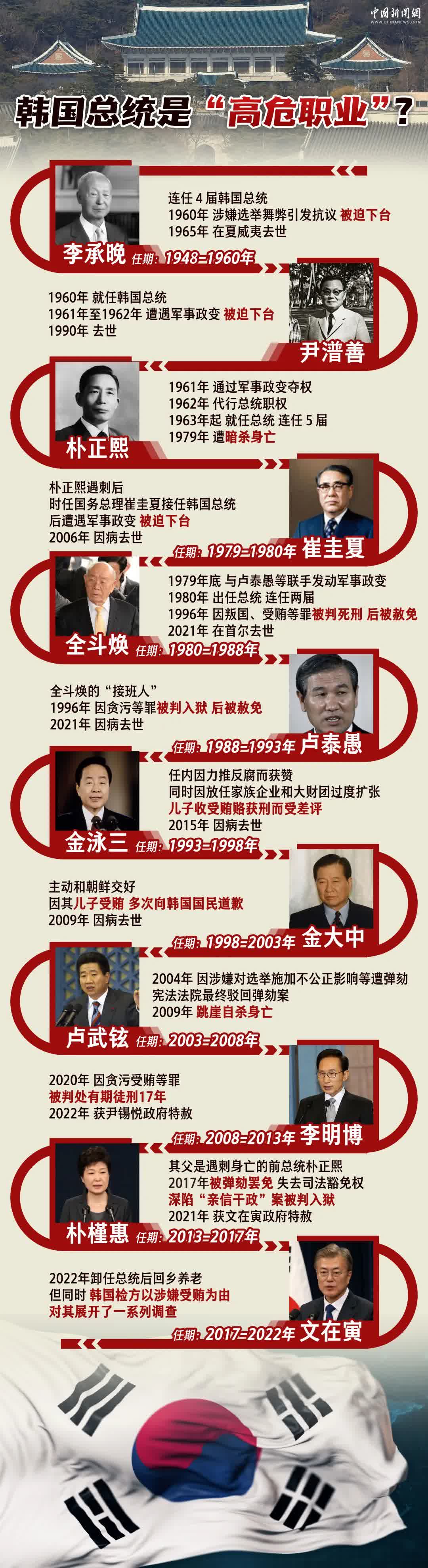 翻開韓國歷史,歷任總統中,有人遭遇軍事政變、被迫下台,有人在任期結束後跳崖身亡,還有不少人官司纏身、譭譽參半……