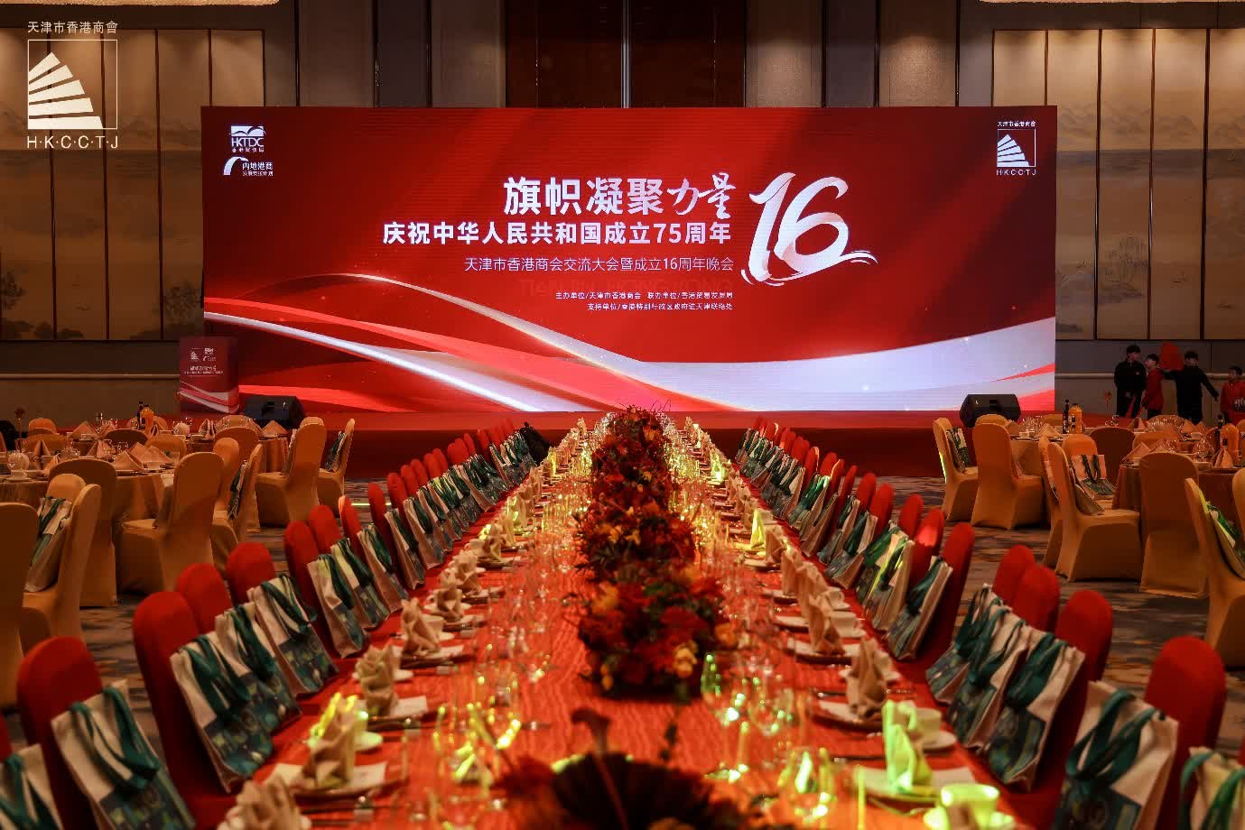 12月13日,「旗幟凝聚力量 慶祝中華人民共和國成立75周年暨商會成立16周年晚會」在天津隆重舉辦。此次盛會由天津市香港商會主辦,香港貿易發展局聯辦,吸引了眾多嘉賓與會員齊聚一堂,共同見證這一歷史性時刻。