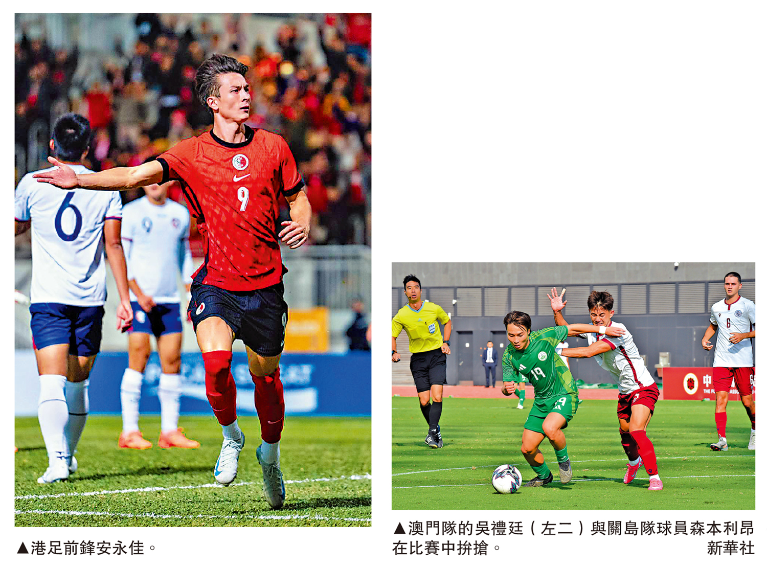 (大公報記者 朱家立)東亞盃外圍賽2024賽事於昨日舉行,中國香港代表隊於晚上8時坐鎮旺角大球場迎戰中國台北。最終港足以2∶1擊敗對手,成功在B組出線。至於另一場賽事則是下午2時中國澳門對關島,最終澳門以1∶2不敵,關島將與港足在12月17日決出晉級決賽周的一支球隊。