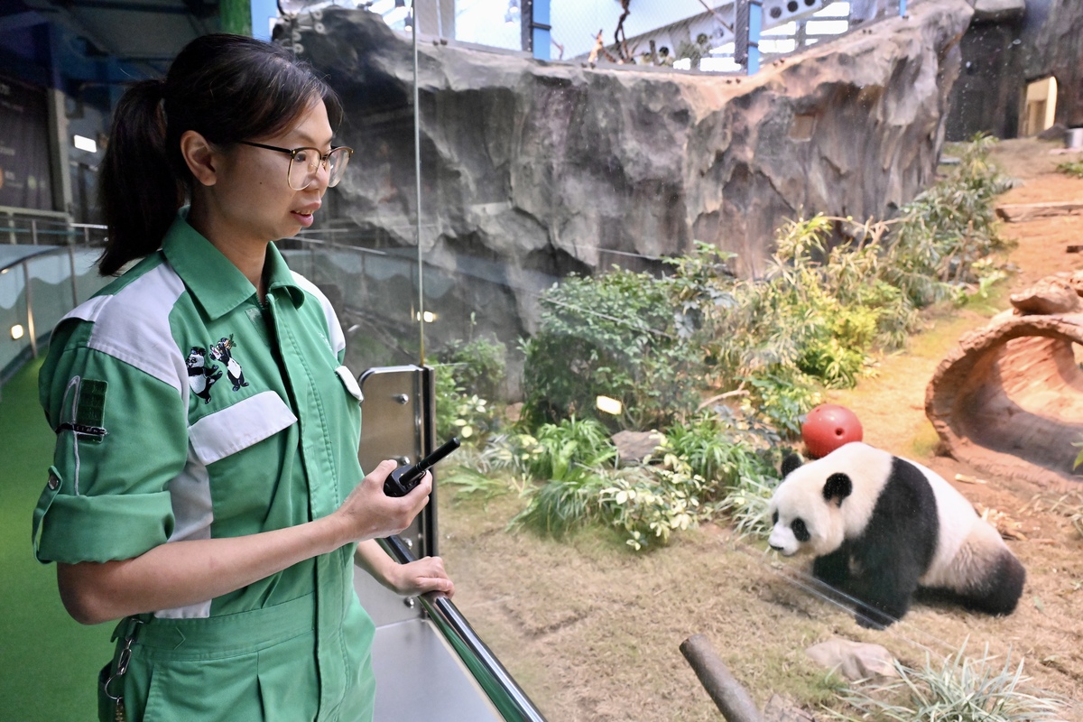 胡綺琪在海洋公園工作17年,無論是已離世的大熊貓安安、佳佳,還是樂樂、初為人母的盈盈,以至龍鳳胎,都曾得到她悉心照顧。