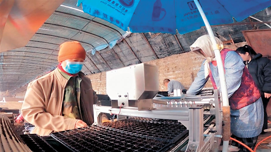 就拿番茄苗移栽機來說,一次性就能完成打穴、栽苗、扶苗、覆土等流程。田喜雲細細盤算,平均每天作業面積可達28畝,移栽78,000株番茄苗,相當於30個人的工作量。
