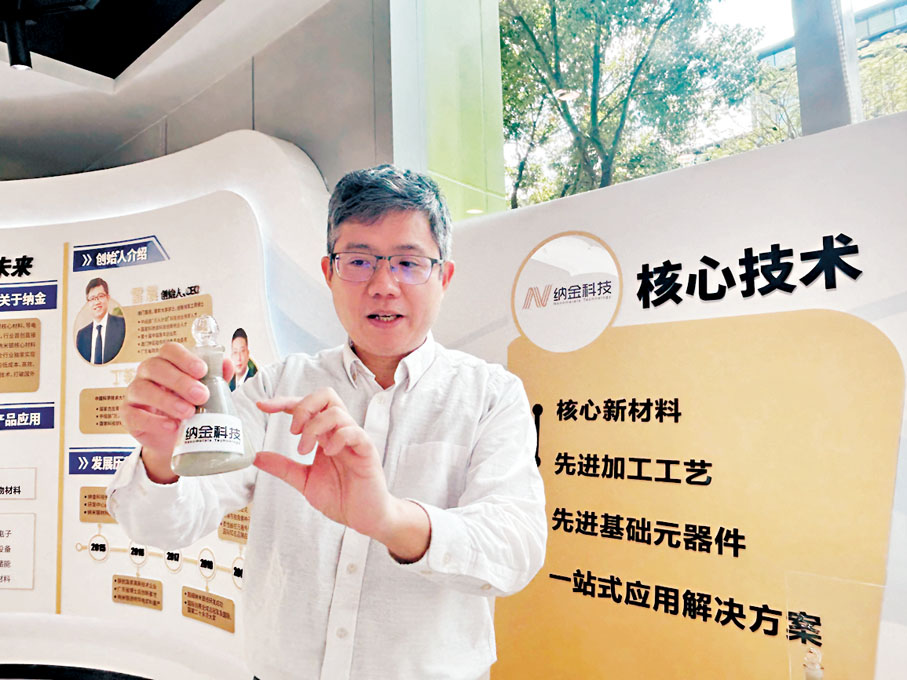 作為從事前沿納米材料研發的「澳人澳企」標杆企業,納金科技同樣做了「孔雀東南飛」的選擇。畢業於清華大學材料科學與工程系的澳門青年雷震,帶領團隊研發出納米銀核心材料,將金屬銀通過獨特工藝製備成納米級的銀顆粒或者銀線,直徑約20納米,僅為頭髮絲的萬分之一。該項目填補了國內該領域的發明專利空白。