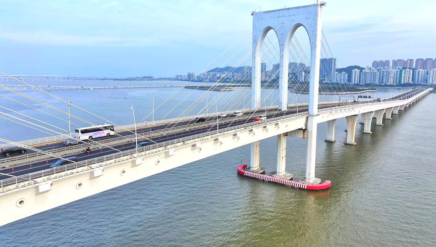 (宇通新能源客车驶过澳门大桥)