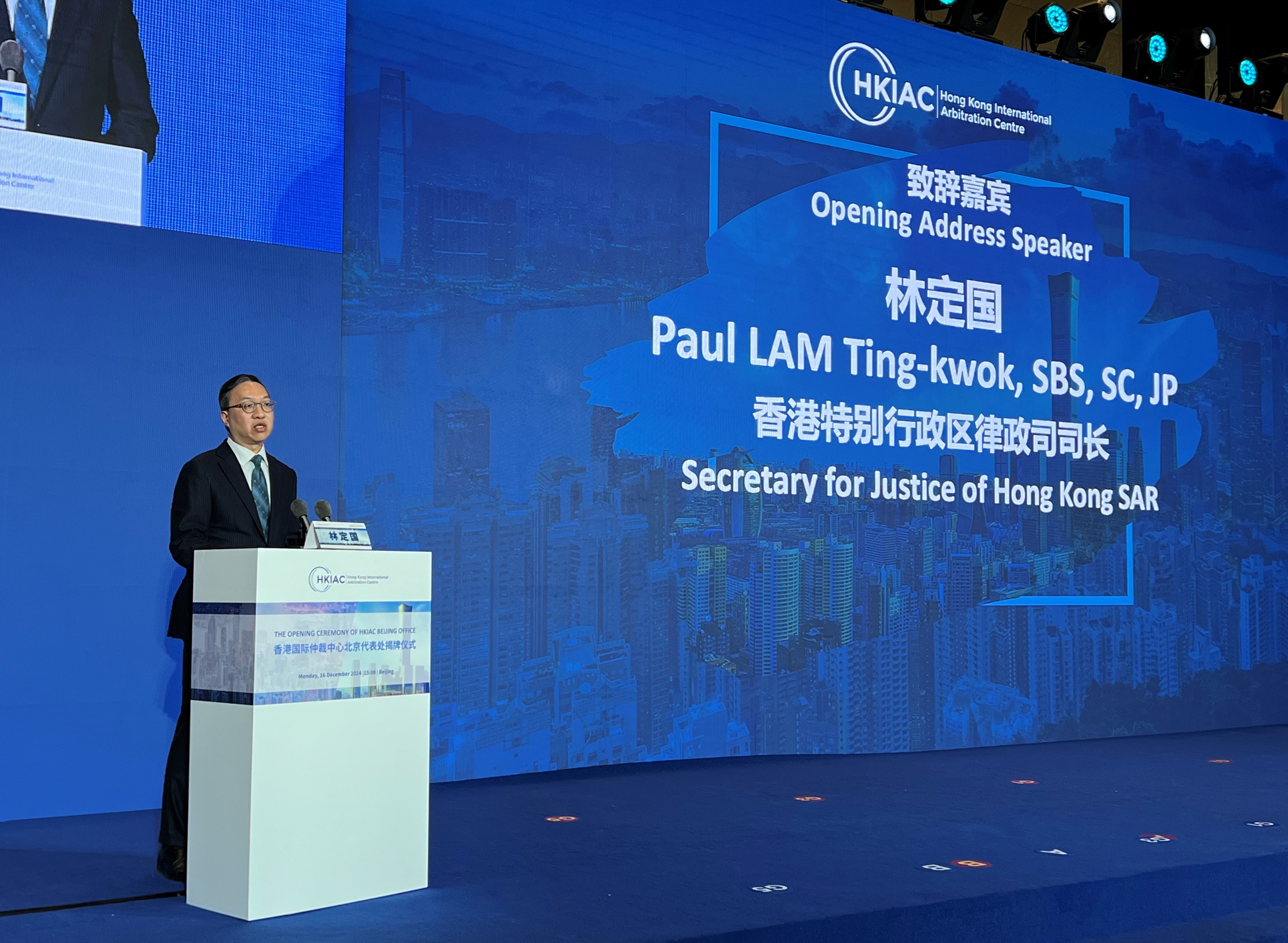大公文匯全媒體報道,香港國際仲裁中心(港仲)北京代表處今日(16日)在北京揭牌,律政司司長林定國致辭時表示,港仲成為第一所內地以外仲裁機關在北京成立辦公室,形容是「里程碑」,相信港仲北京代表處的成立令北京在仲裁領域更國際化、更多元化、更能配合國家發展所需。