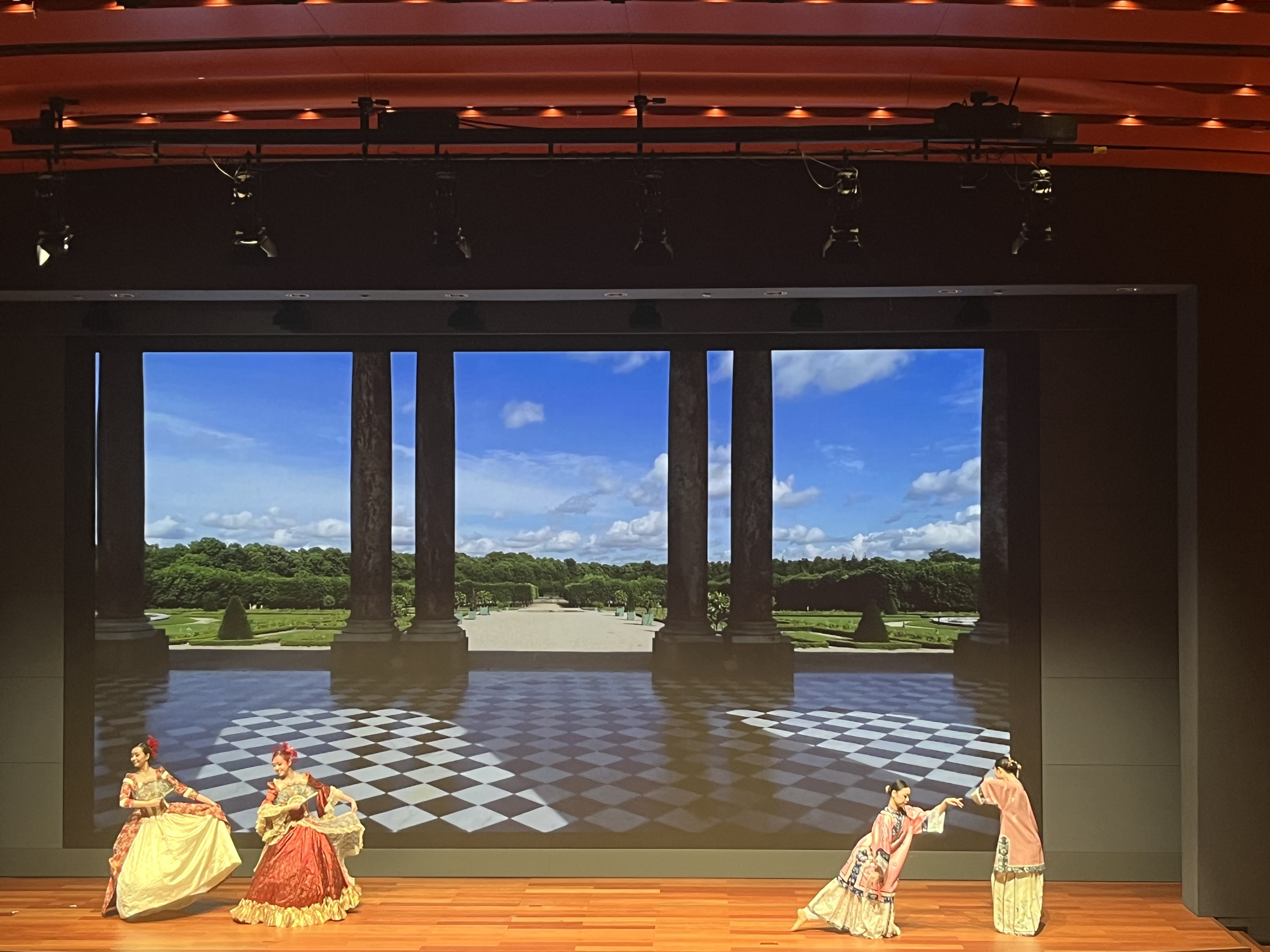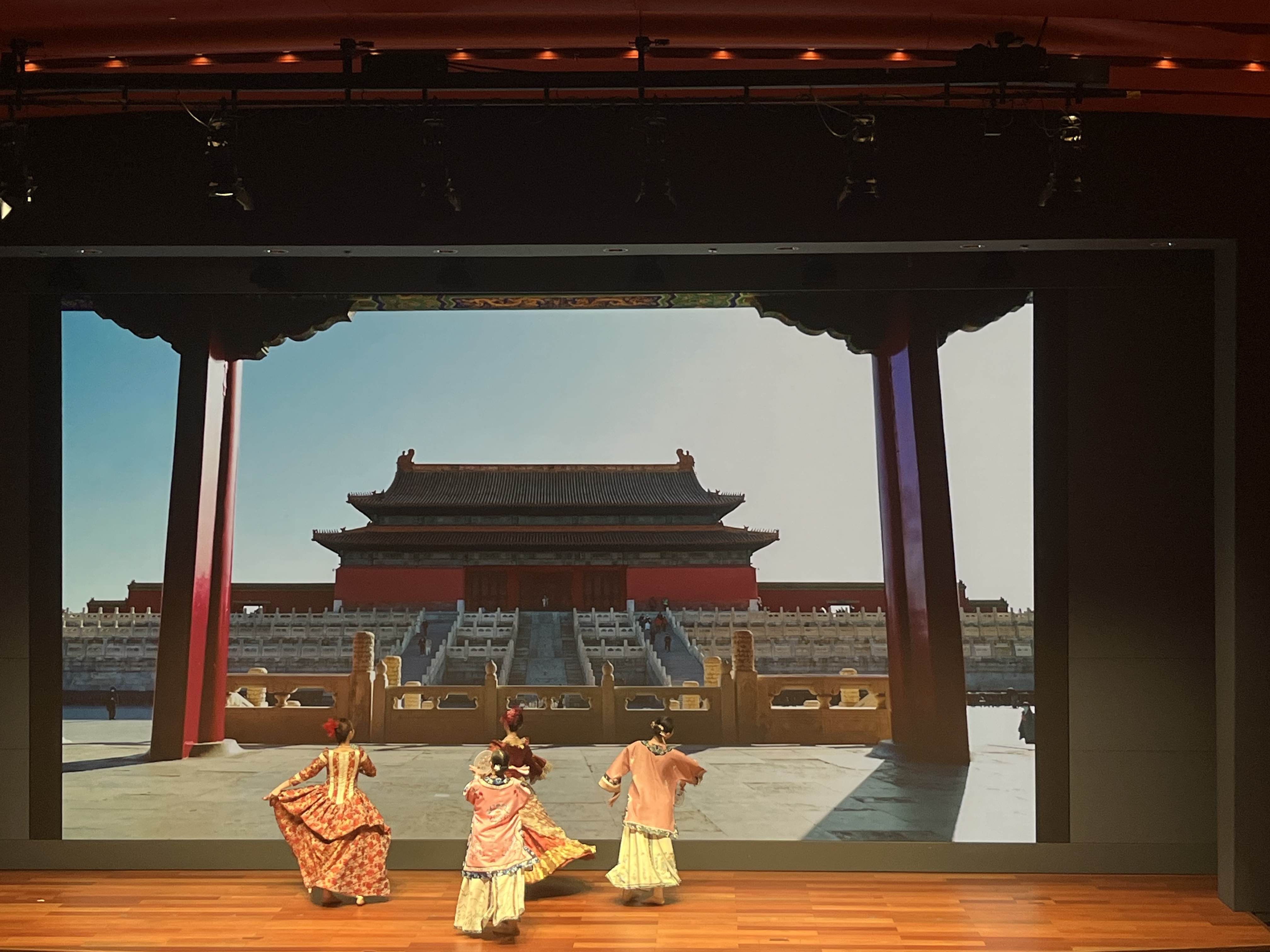 典禮以一段舞蹈表演開始,兩隊舞者分別身穿中法宮廷服飾,在交織變幻的紫禁城和凡爾賽宮背景下齊舞,將人一秒帶回歷史,感受17至18世紀中法宮廷的歲月。