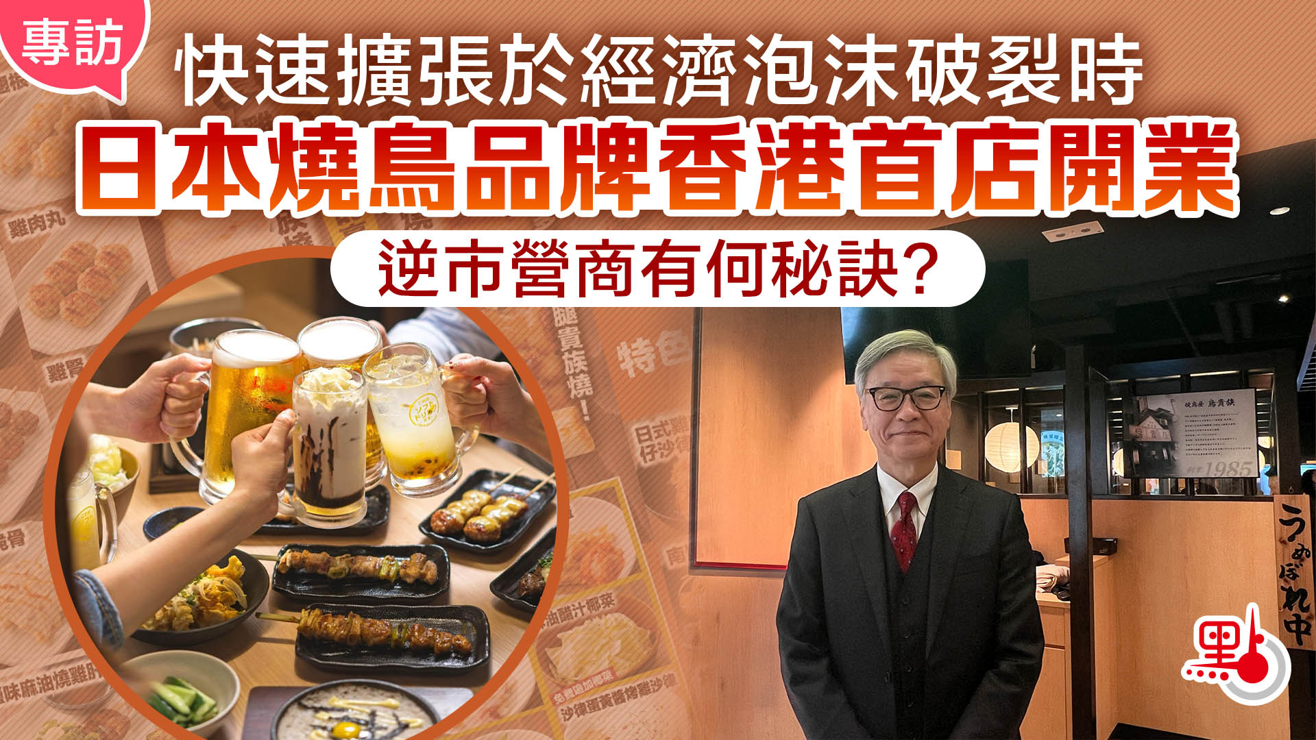 (大公文匯全媒體 記者 章芸菲)居酒屋,不僅是美食的匯聚之所,更承載着飲食文化內涵。在這裏,人們暢飲各類飲品,搭配着燒鳥、烤物、炸物以及爽口的小菜,分享喜怒哀樂、生活瑣事,形成了獨特的社交生態。日本居酒屋品牌「鳥貴族」今日(16日)於屯門市廣場開業,鳥貴族創辦人大倉忠司接受大公文匯全媒體等傳媒訪問時,分享其進駐香港市場期待,以及餐飲業務在經濟泡沫時期實現快速擴張的經驗。
