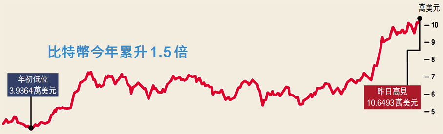 在深圳從事比特幣投資的卓一浪也對香港文匯報記者表示,正是看到全球對比特幣帶來的利好消息眾多,他於一個月前重倉投資比特幣,「2015年開始我就進行區塊鏈投資,逐步進倉比特幣,熊市抄底,牛市收割。這次我買入近百個比特幣,當時價格是6萬多美元,現在漲到10萬美元,目前收益近五成,現在還在持有,估計未來一段時間將漲至13萬(美元)左右。」他稱,現在是比特幣小牛市,大牛市還沒有到來,預計未來一年將漲到15萬到18萬美元。「現在國內外紙幣通脹厲害,因為可以大量增發,而比特幣不可以增發。而且現在一些國家比特幣可以流通,在國際上可作場內場外市場進行交易變現或者支付。」