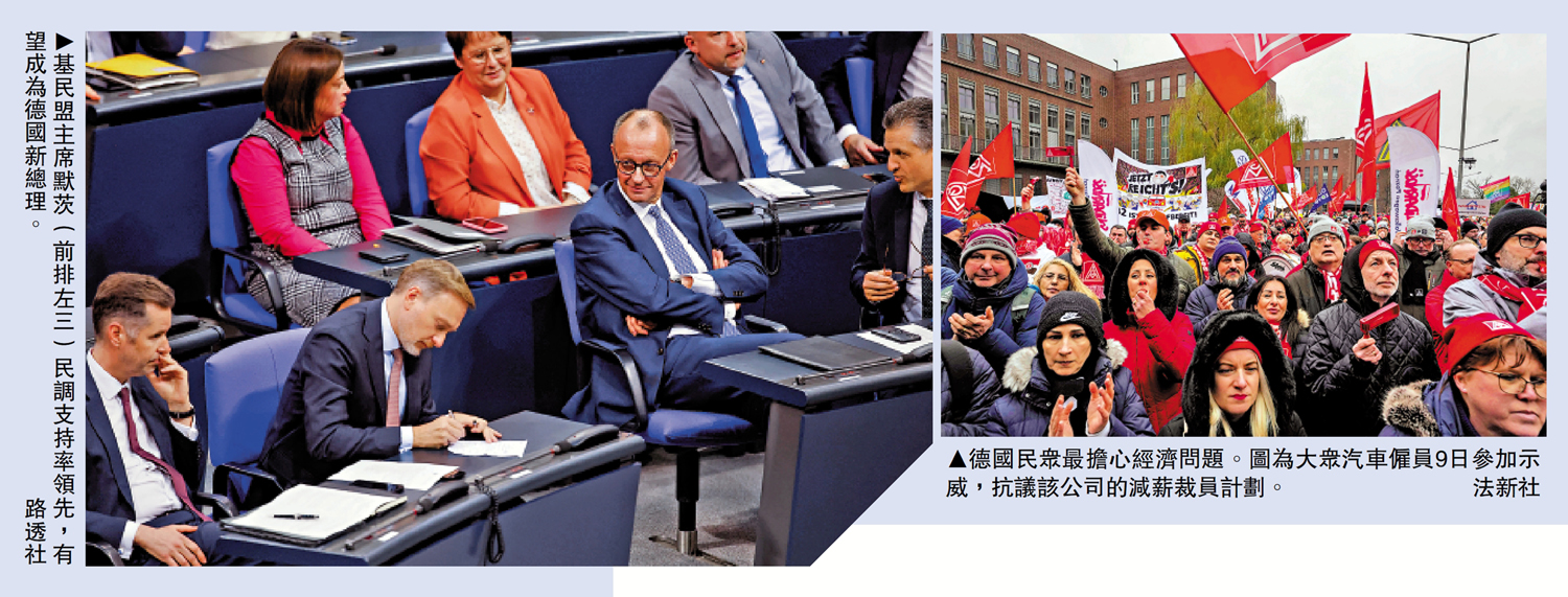 德國民調機構本月稍早公布的最新民調顯示,經濟形勢已成為德國民眾最擔心的問題,45%的受訪者認為經濟問題「最緊迫」。德國經濟研究所預測,今年德國經濟將萎縮0.2%。該機構指出,德國的出口導向型製造業正因能源與材料成本上升和國際競爭加劇而遭受衝擊;工業衰退的影響蔓延至勞動力市場,大眾汽車等大型企業紛紛降薪裁員;消費者信心和購買力也受到抑制。在經濟不景氣的背景下,「紅綠燈政府」在預算案和經濟政策方面的矛盾不斷激化,最終執政聯盟走向瓦解。