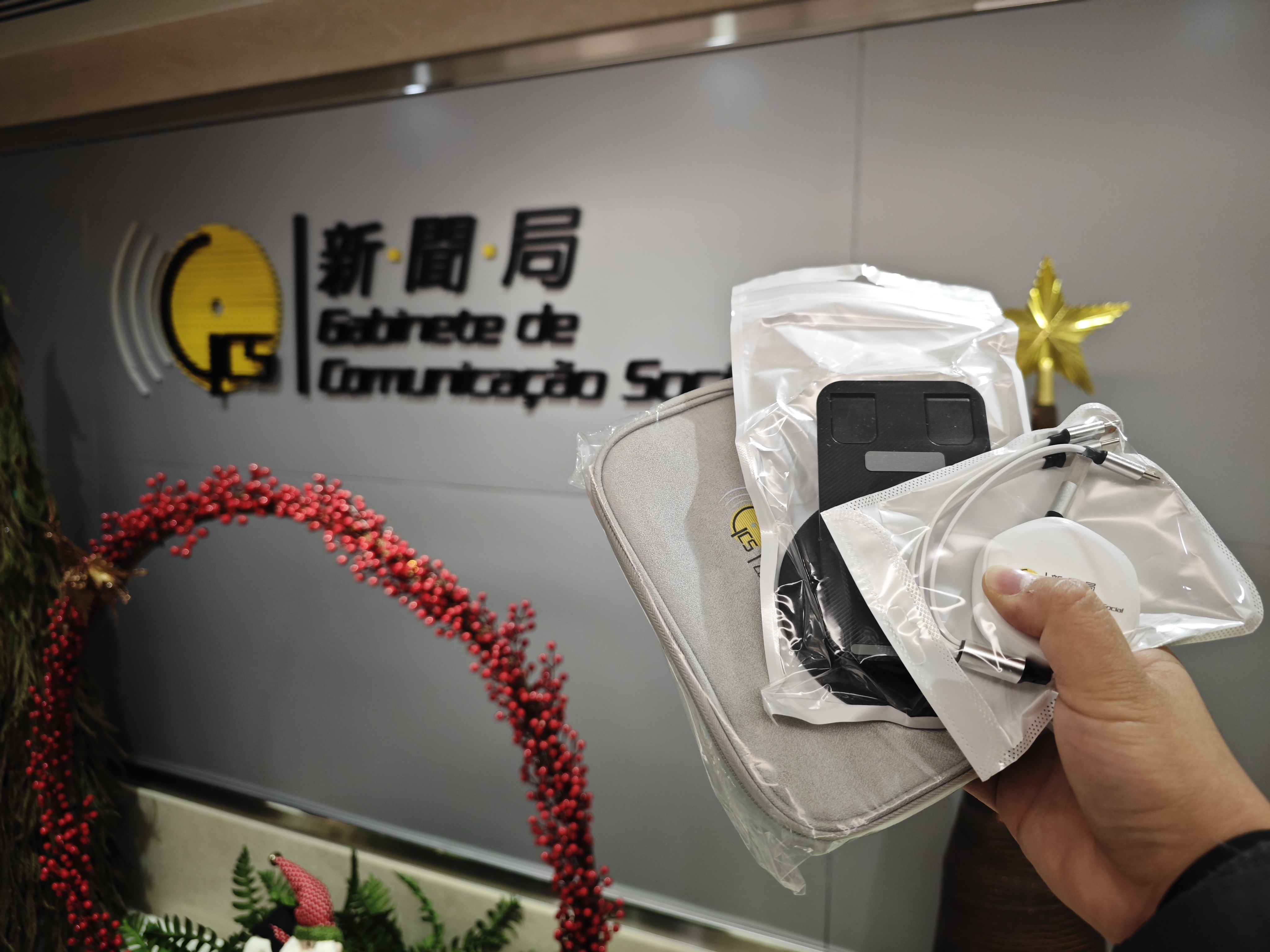 記者今日(17日)抵埗澳門後,立刻前往澳門新聞局領取採訪記者證,第一時間收到當地新聞局貼心準備的帆布袋記者包,內有充氣頸枕、充電線、手機座、收納袋、保溫水壺等物品。禮品普遍印有澳門新聞局的標誌,而且以實用性為主,當中記者最喜歡保溫水壺。剛好天氣轉涼,喉嚨容易發癢,保溫水壺可以便利記者飲用各式各樣的茶包和沖劑養身。